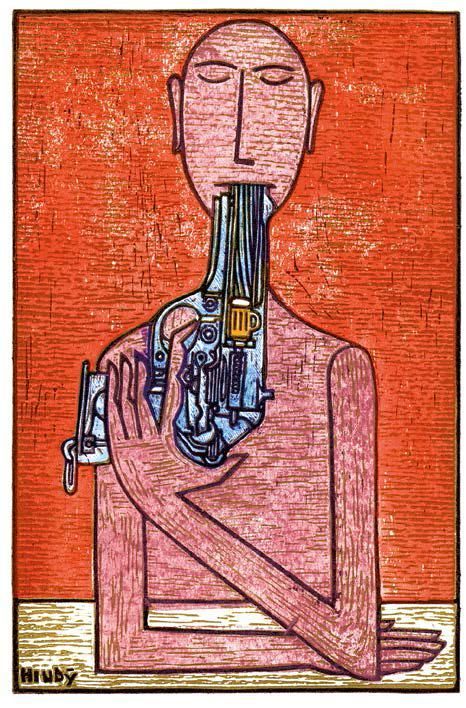 Hrubého kresby do značné míry determinuje jeho moravský temperament: jakoby rozvážný až chladný, ale pod povrchem vroucí. Jeho výtvarné zprávy o životě jsou zdánlivě nevzrušivé, přímo idylicky klidné, nikdy však statické. Všechno se odehrává vevnitř, kdesi v tajné jeskyni. Leží v ní klíč k naší hlavě i srdci: vášeň pro detail. Detail, který je pod správným zorným úhlem schopný zvrátit chod událostí.