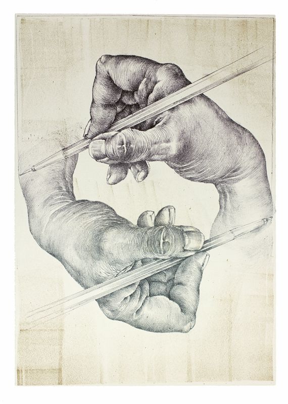 V letech 1965-67 vytvořil první řadu kreseb a cyklus pěti litografických kamenorytin.