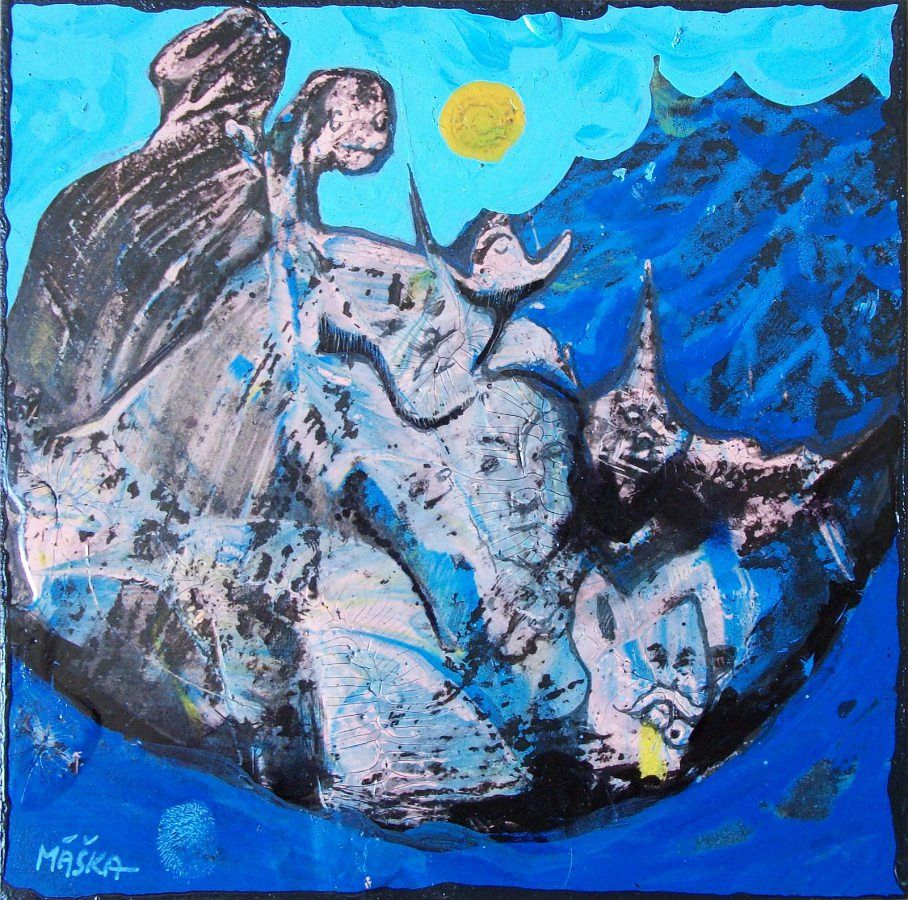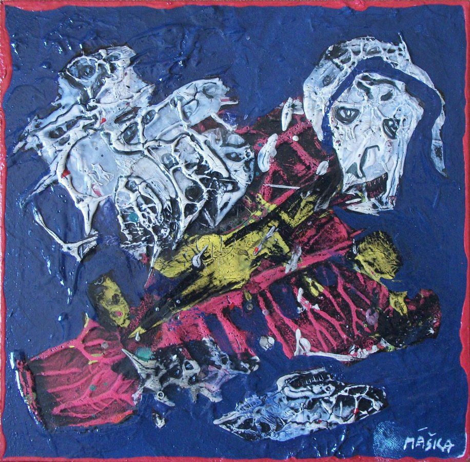 S několika přáteli, malíři a sochaři vytvořil uměleckou skupinu, která vystavovala, pro komunisty, nepřijatelné umění a jejich výstavu v roce 1983 ukončili soudruzi s policejní dohrou. Uzavřeli tím možnost pro členy skupiny na dlouho vystavovat a možnost jejich uměleckého vývoje. Jiří Máška, protože k životu potřeboval svobodně malovat a hovořit, opustil republiku a emigroval do Spojených Států, kde pokračoval ve studiu malířství u profesora Hansona na Evrett College ve Washingtonu.