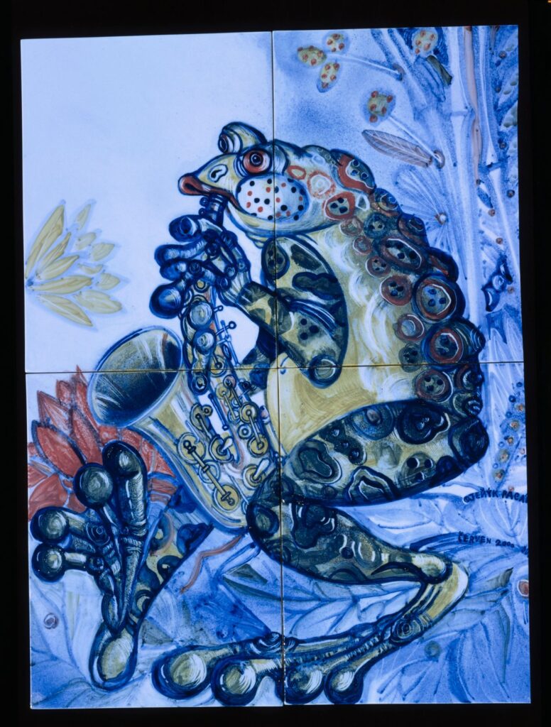 V grafické tvorbě pracuje téměř výhradně technikou dřevořezu. Od roku 1992 se věnuje malbě na porcelán.
