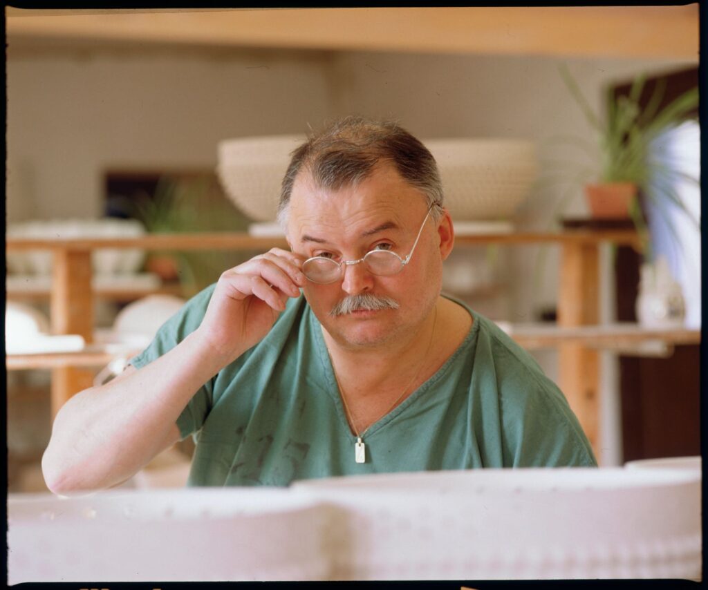 V grafické tvorbě pracuje téměř výhradně technikou dřevořezu. Od roku 1992 se věnuje malbě na porcelán.