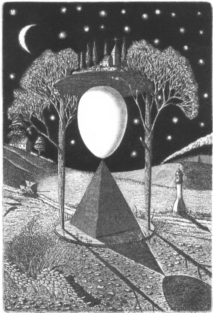 - „Zrcadla nočních měst“, 12 grafických listů s básněmi Ludvíka Kundery, soukromé vydání, Brno, Praha.