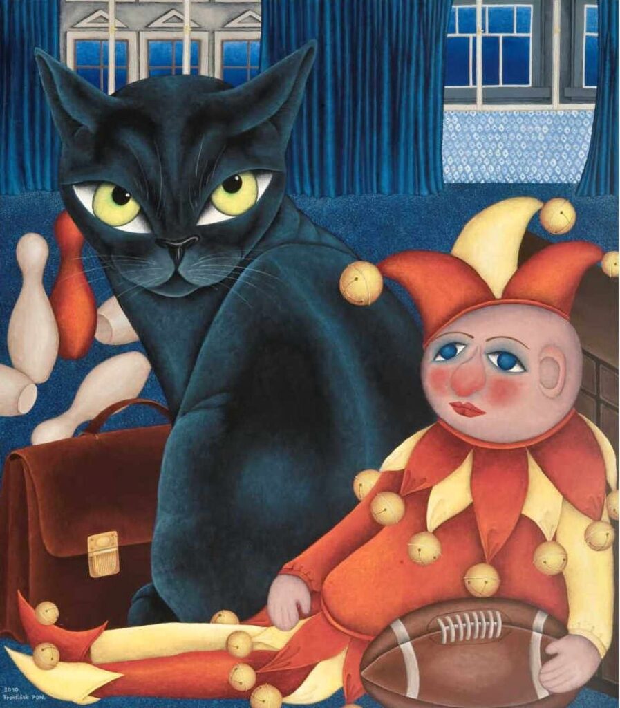 Oba milují kočky, které také najdete na většině jejich obrazů a litografií, a život s nimi se stal i námětem několika jejich knih. Časem přestalo být zřejmé, čí je nápad, obrázek nebo text. To platí i o obrazech, litografiích a knihách podepisovaných zkratkou František PON. Jitka je specialistkou na jemné detaily, jako jsou např, květiny, ptáci, perské koberce, skleničky s likérem či elegantní vázanky. Olda je naopak na hrubší práci, na něm je například nebe, postavit dům či prkennou ohradu kolem hřiště.