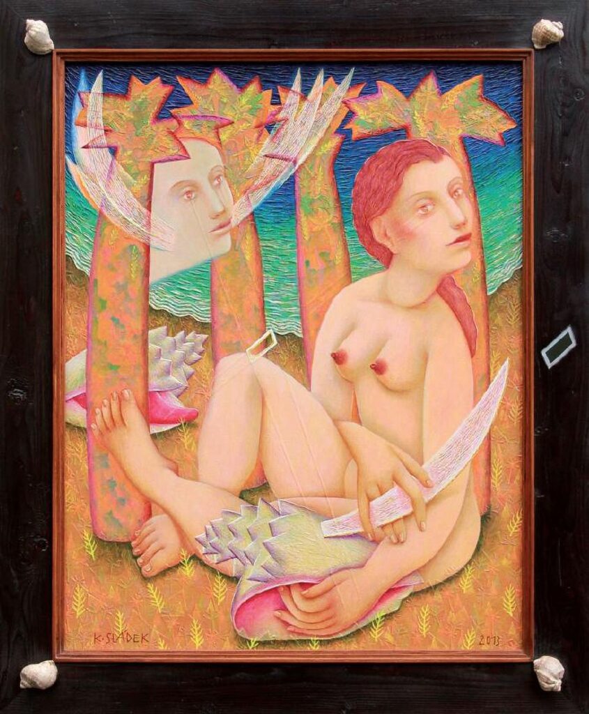 Citát z pera velkého českého básníka Vladimíra Holana, v úvodu tohoto textu, si výtvarník, současný šedesátník, vybral kdysi před mnoha lety jako úvodní motto svého tehdejšího výstavního katalogu. Domnívám se, že jeho obsah pro tvorbu malíře Karla Sládka, jejíž malou část máme možnost zde vidět, je doposud platným a časem potvrzeným krédem.