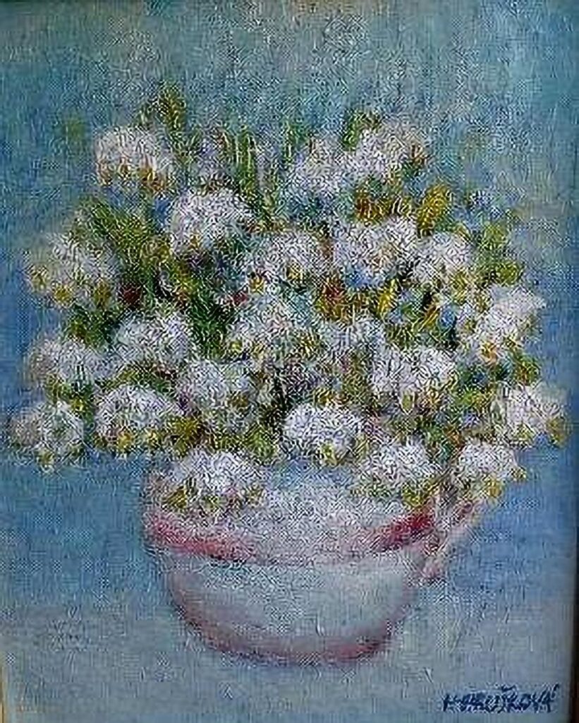 Věnuje se výlučně malbě olejům na plátně. Její obrazy jsou ovlivněny nepřeberným bohatstvím Země, přírody živé i neživé se všemi jejími náladavými a barevnámi odstíny.