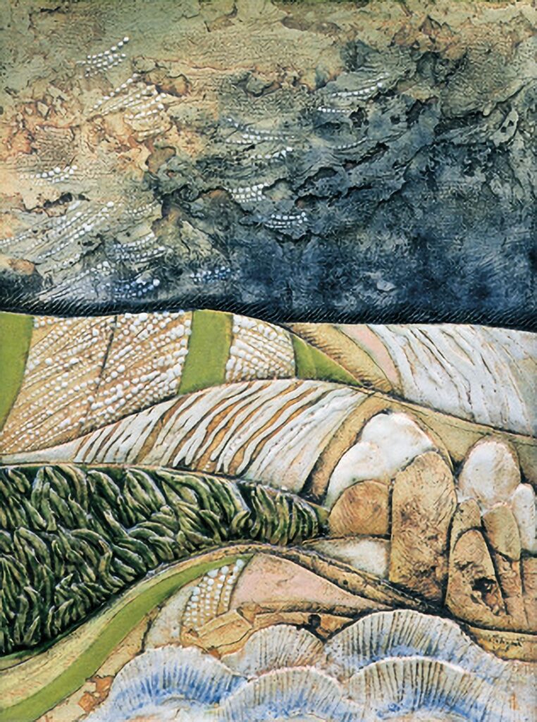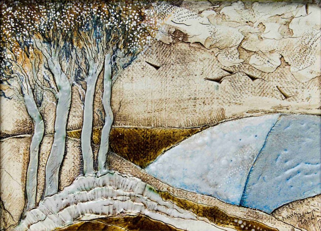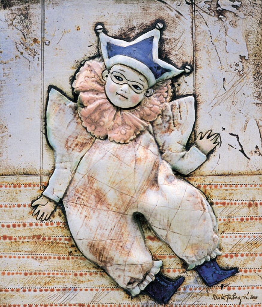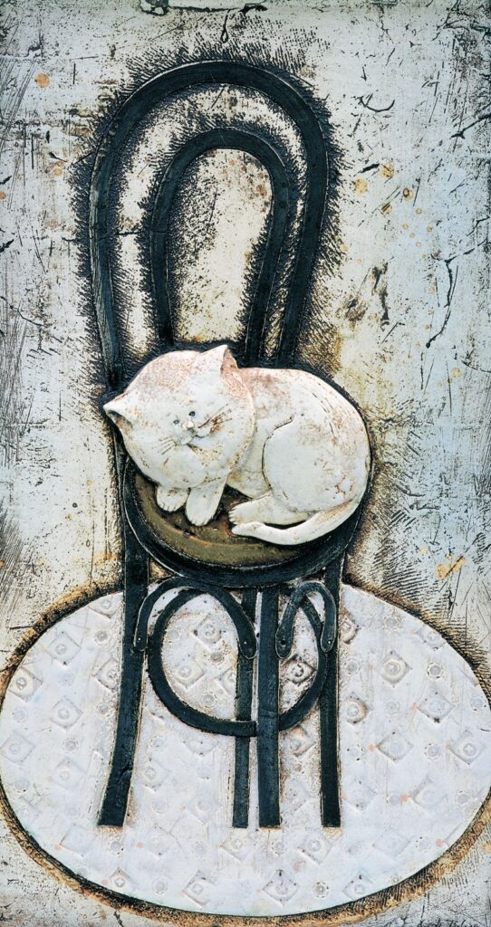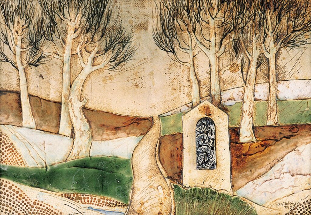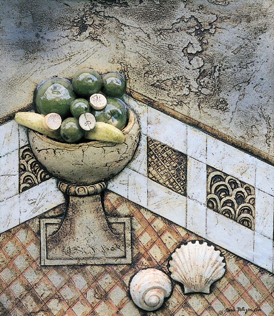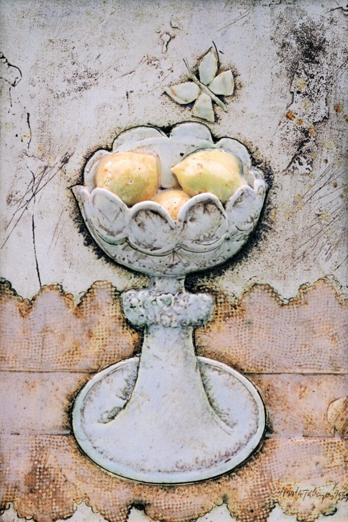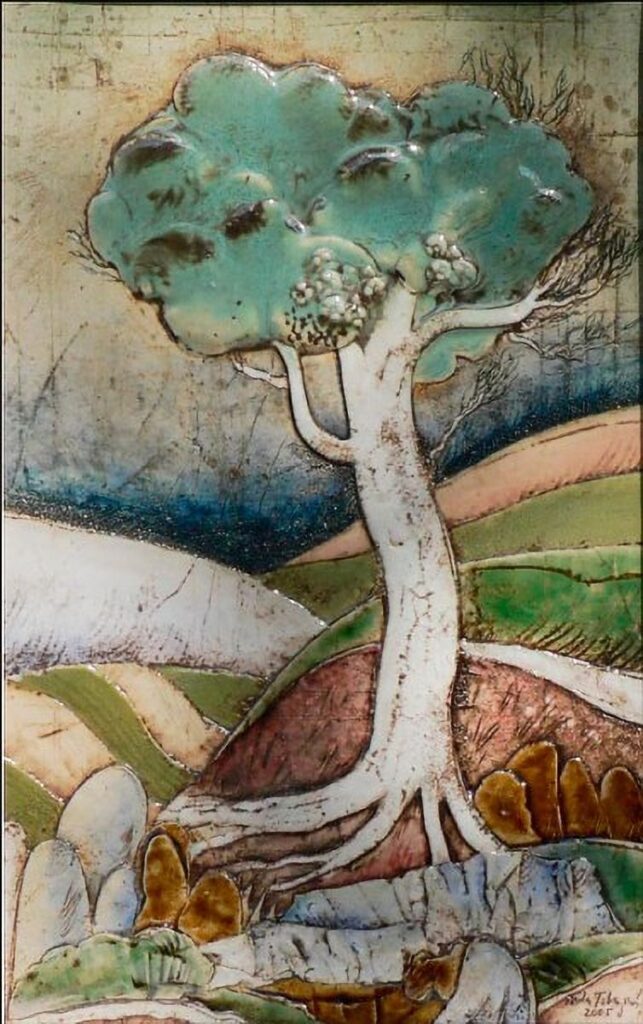 Stejný přístup je možno revokovat rovněž v éře slavných nizozemských zátiší 17. století. Nikoliv ale těch lukulských, přetékajících barokní hojností, ale zamyšlených zátiší, složených ze skromných předmětů tehdejší hmotné kultury, podaných s věrností a realismem, jak nám je zanechal, shodou okolností rovněž olomoucký rodák, Georg Flegel, nebo o něco později Francouz Nicolas Chardin. Že žije Marta Taberyová svůj život naplno, dokládá právě námětový obsah jejích reliéfních keramických zátiší: vzpomínky z cest, evokované významovými zkratkami jako antickým sloupem, jinde mořskou mušlí, nebo většími makroskopickými celky jako rozlehlostí vzdálených i domácích krajin, exotickou květenou nebo rostlinami její vlastní zahrádky. Důvěrně známé sedací nábytky okupují kočičky, v poslední době se prosazuje i svět vnuček, znázorněný hračkami, loutkami, romantickými panenkami. Mikrosvěty keramických obrazů vznikají v dílně autorky pomocí bravurně zvládnuté keramické technologie právě tak jako citlivostí sochařské modelace. Hravě působící, přesto náročný proces je dále propojen s erudovanými, léta studovanými barevnými glazurami, jejichž matný povrch oživuje bohatá povrchová struktura. Reliéfy jsou komponovány do dvou až tří perspektivních plánů, kde zejména v krajinných pohledech dokáže Taberyová v zadním plánu vyvolat iluzi dalekých obzorů.