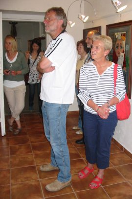 Druhá vernisáž dvanácté výstavní sezóny proběhla za příjemné atmosféry a pěkného počasí květnové soboty. Vzhledem k tomu, že oba vystavující mají blízko i k slovnímu projevu, zabezpečili také svým proslovem kulturní program. Pak se přidali i účastníci vernisáže a bylo to. Nejsilnější skupinou na vernisáži bylo pět členů Rotary klubu z Hluboké nad Vltavou. Mezi významné návštěvníky vernisáže patřil jistě starosta Hluboké nad Vltavou a senátor Tomáš Jirsa. K výstavě již tradičně promluvila galeristka Marie Hanušová po stručném zahájení Pavla Frelicha, za občanské sdružení Knížecí dvůr, provozující stejnojmennou galerii.