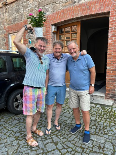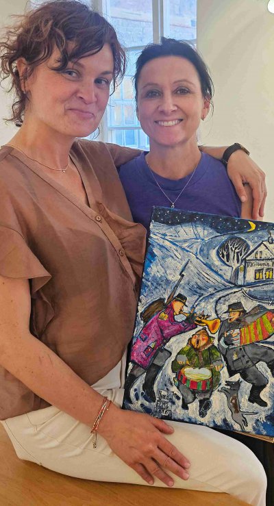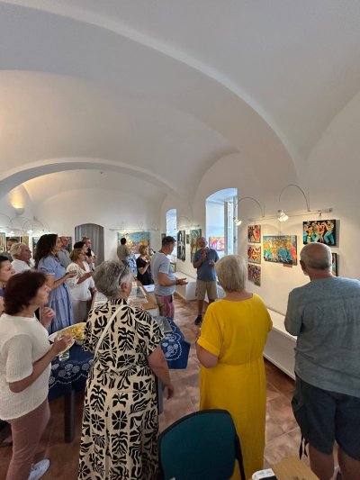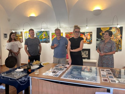 Připili jsme si na úspěšnou cestu obrazů na další výstavu a popřáli, ať dělají novým majitelům radost.