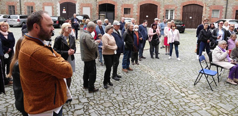 Počasí nám přálo a tak vernisáž pod širým nebem zahájil za galerii Pavel Frelich, k autorovi a jeho dílu promluvila galeristka Marie Hanušová. Něco přidal i samotný autor a v kulturním programu zahrál a zazpíval za skupinu ŠansoNOVÍ reBRELové MARTIN DOBÍŠEK, klávesy a akordeon.