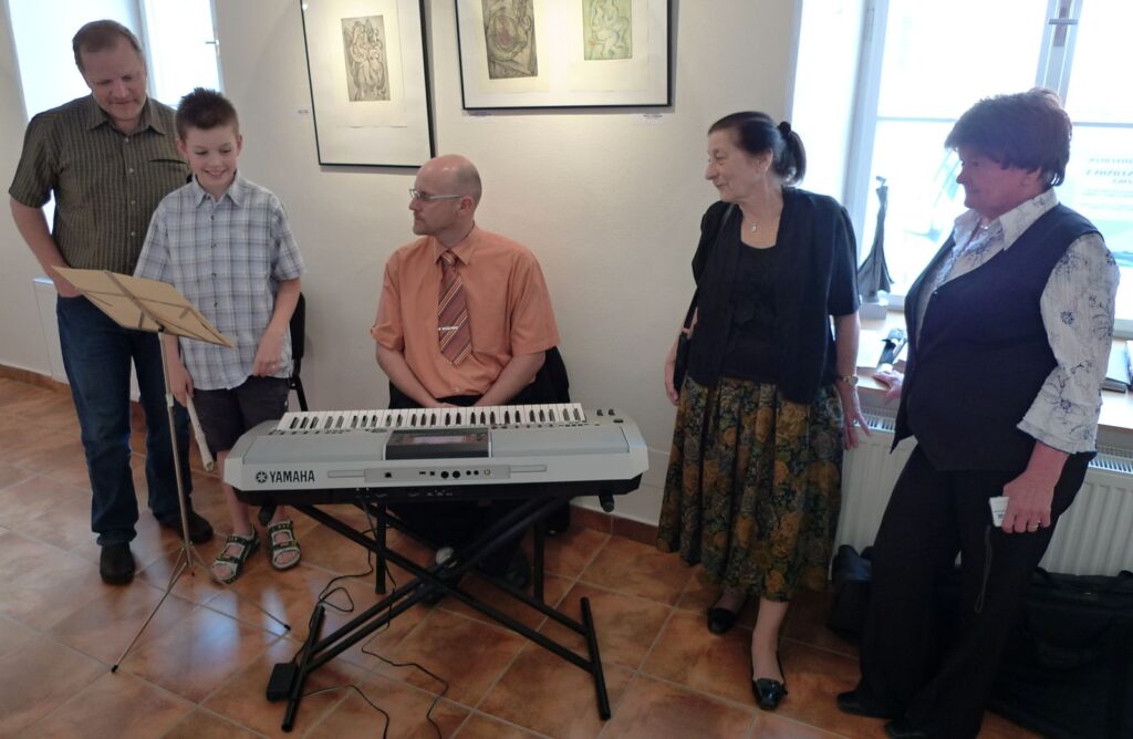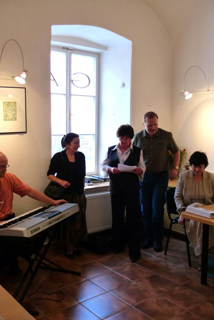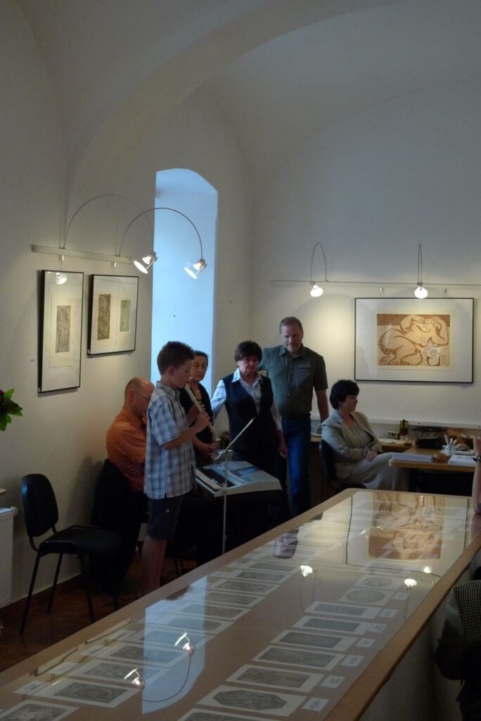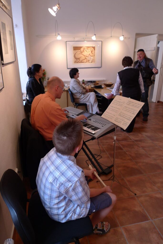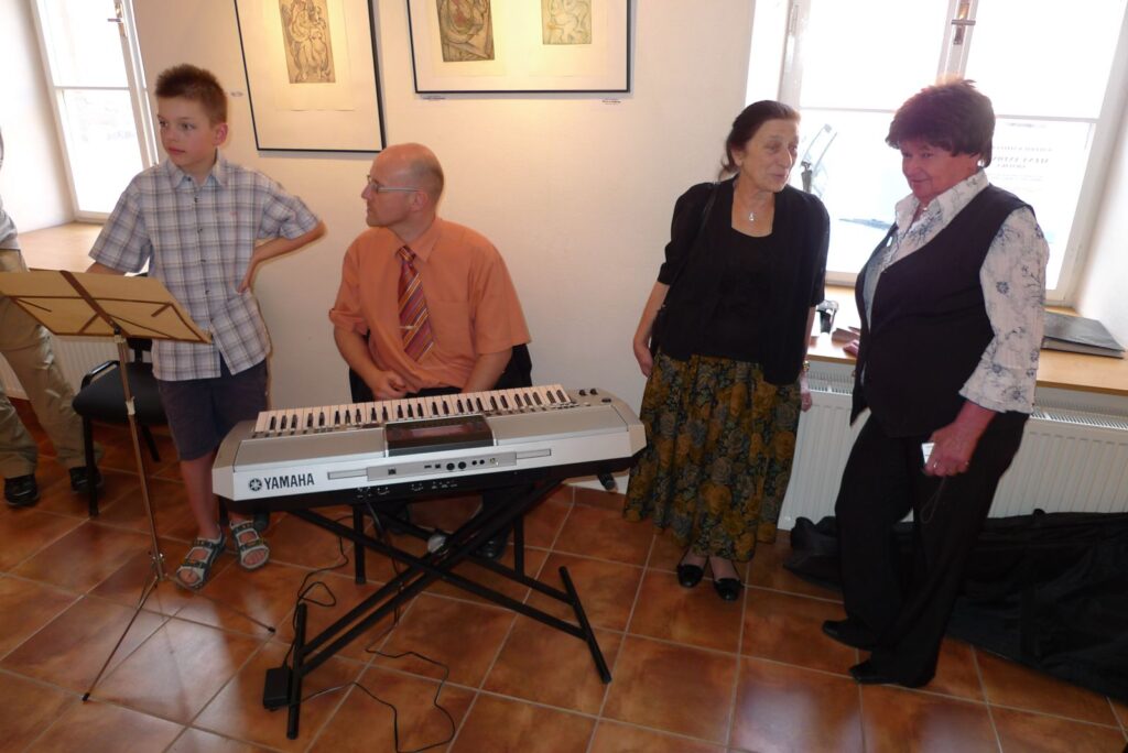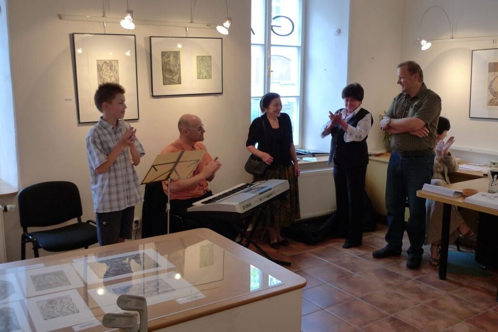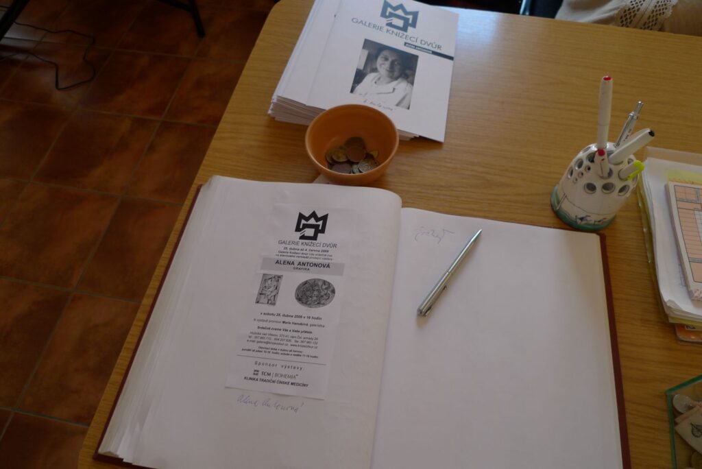 Druhou vernisáž sezóny 2009, Alena Antonová – grafika, uvedla galeristka Marie Hanušová. V kulturním programu vernisáže jsme pokračovali, dalo by se říci již tradicí, jež lze nazvat „Petr Píša a jeho žáci“. Tentokrát vystoupil na zobcovou flétnu Adam Brisuda. Na něho pak navázal Petr Píša na klávesy.Mezi významné hosty vernisáže patřil místostarosta Hluboké nad Vltavou pan Ing. Pavel Dlouhý. Pěkným obohacením jejich dnešního slavnostního dne byla jistě vernisáž i pro čerstvé novomanžele Machovi (blahopřejeme). No a v neposlední řadě se dnešní vernisáž stala jeho první vernisáží, první kulturní akcí a vlastně první delší vycházkou pro Honzíka Doseděla, dvoutýdeního vnuka provozovatelů galerie (přejeme vše nejlepší do života).Dalším nej byla také účast čtyř pejsků na vernisáži v jednom okamžiku. Pak již jen krásná vernisáž, krásná výstava paní Aleny Antonové, děkujeme za ní.