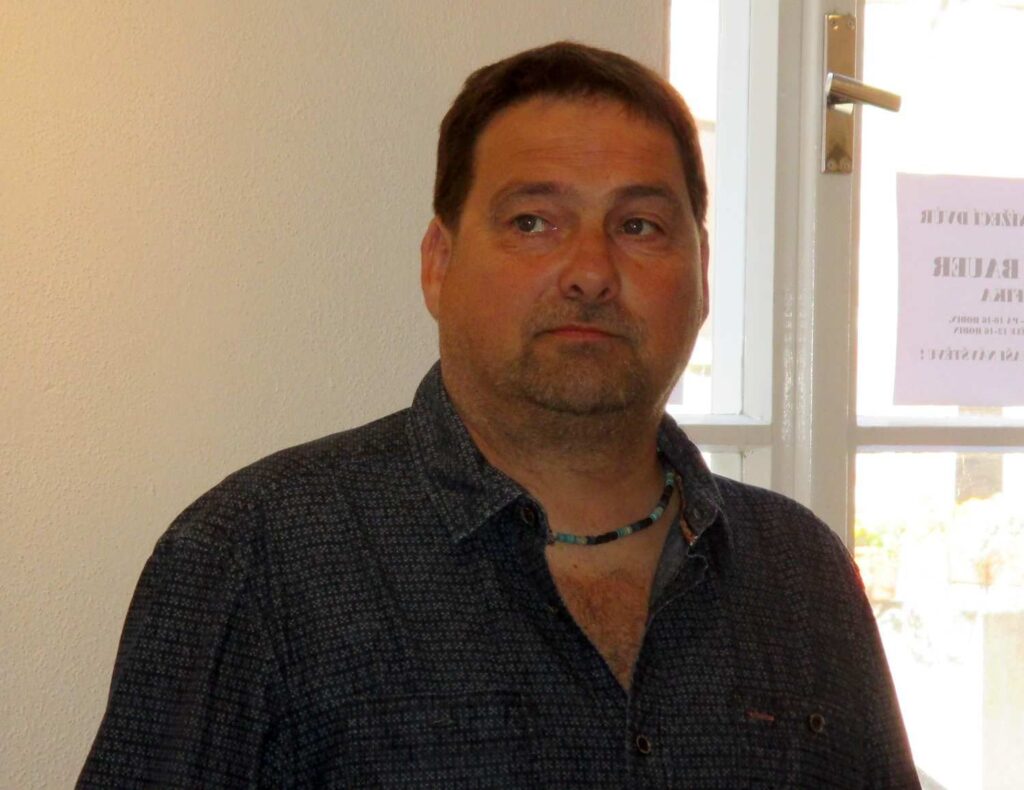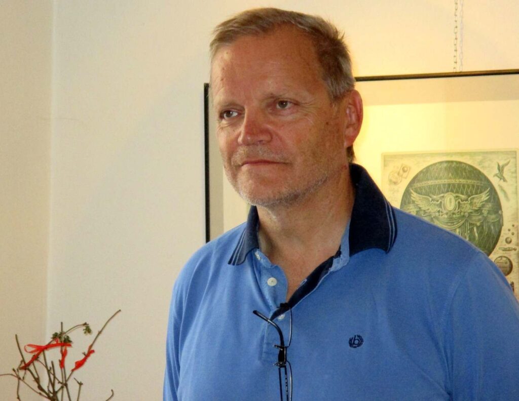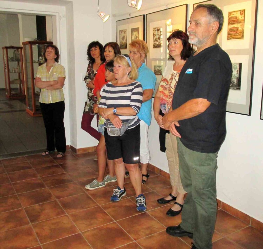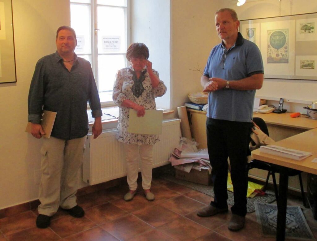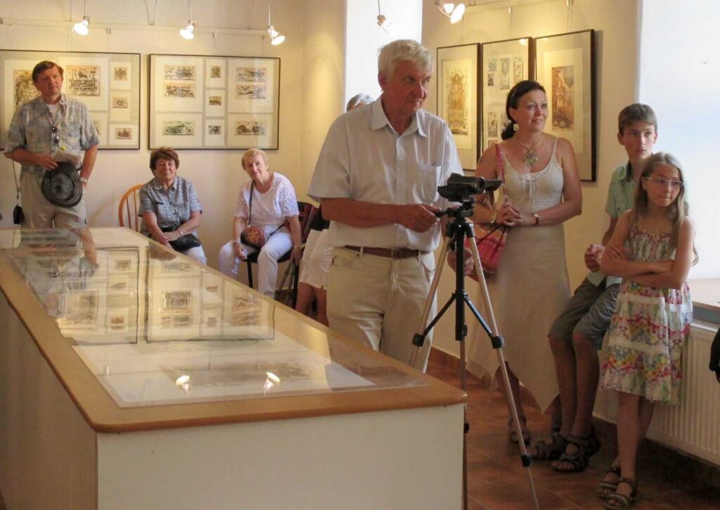 ypická letní dovolenková vernisáž. Za okny letní sluníčko a ve výstavních prostorách několik věrných návštěvníků, přátelé a rodina výtvarníka.