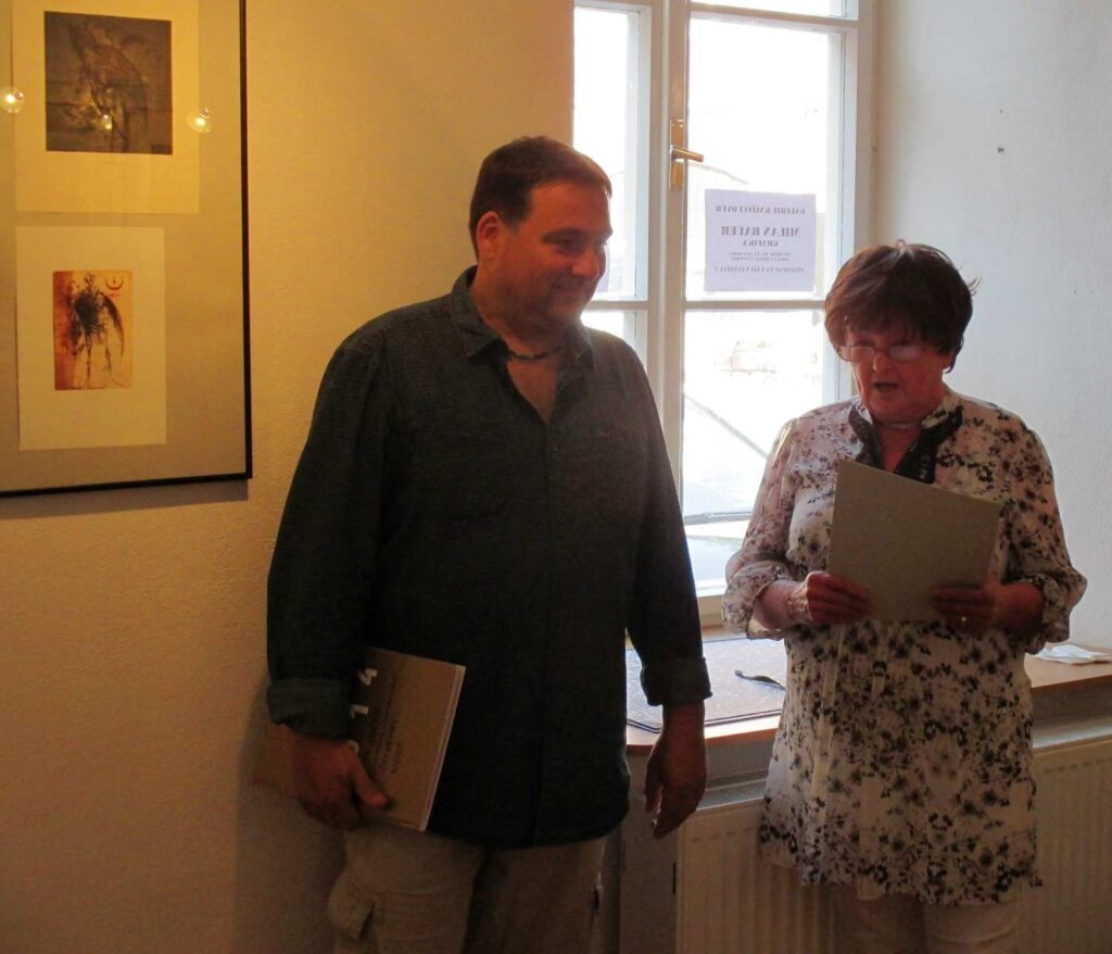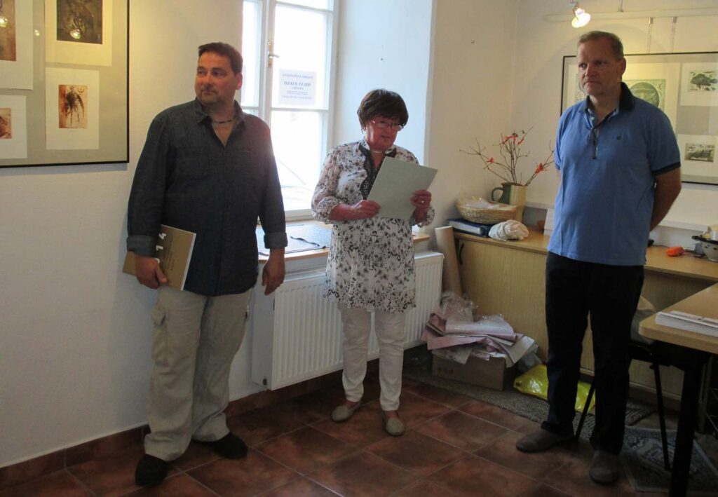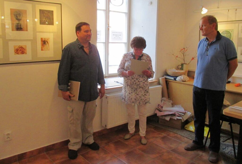 Vernisáž zahájil Ing.Pavel Frelich, k výstavě promluvila Marie Hanušová, galeristka. K velkému potěšení všech zúčastněných se ke své tvorbě vyjádřil i sám autor, k technice své grafické práce, její historii vzniku i svým námětům, vzorům apod. Moc pěkné povídání a celá dnešní vernisáž.