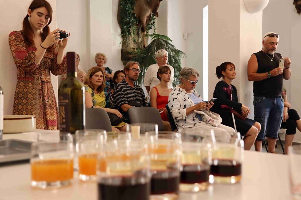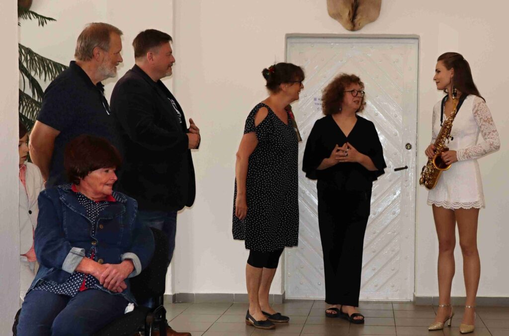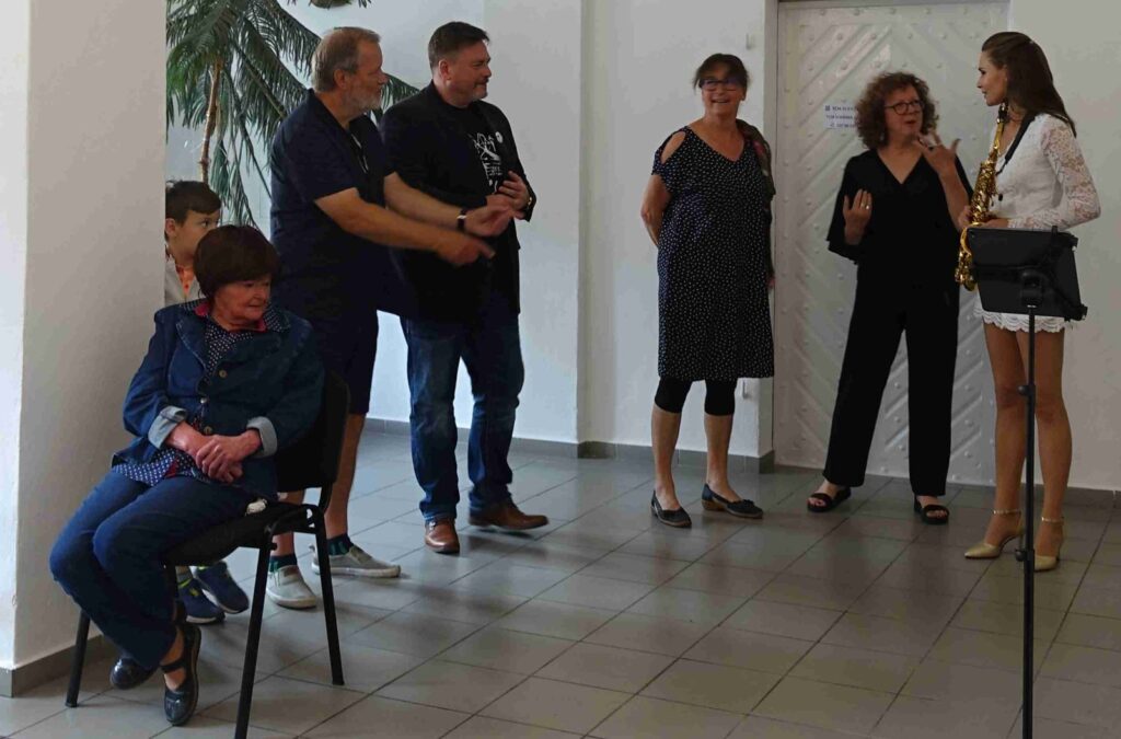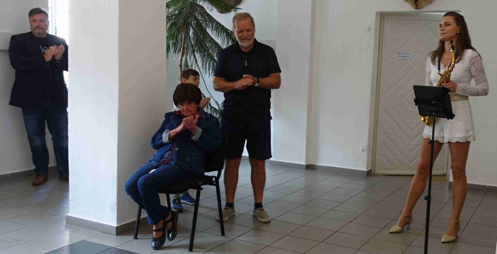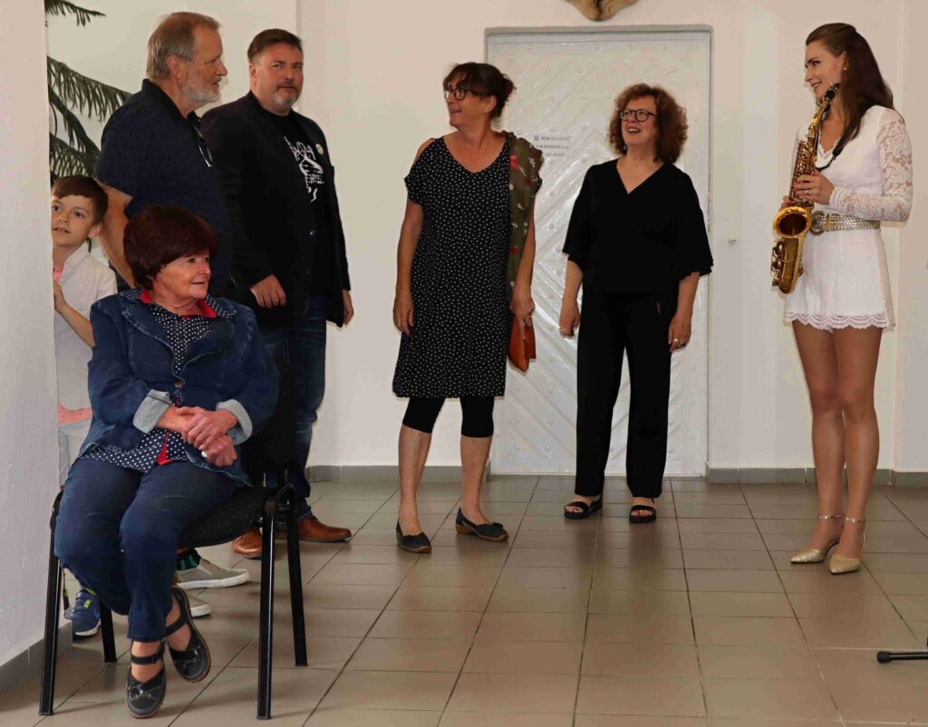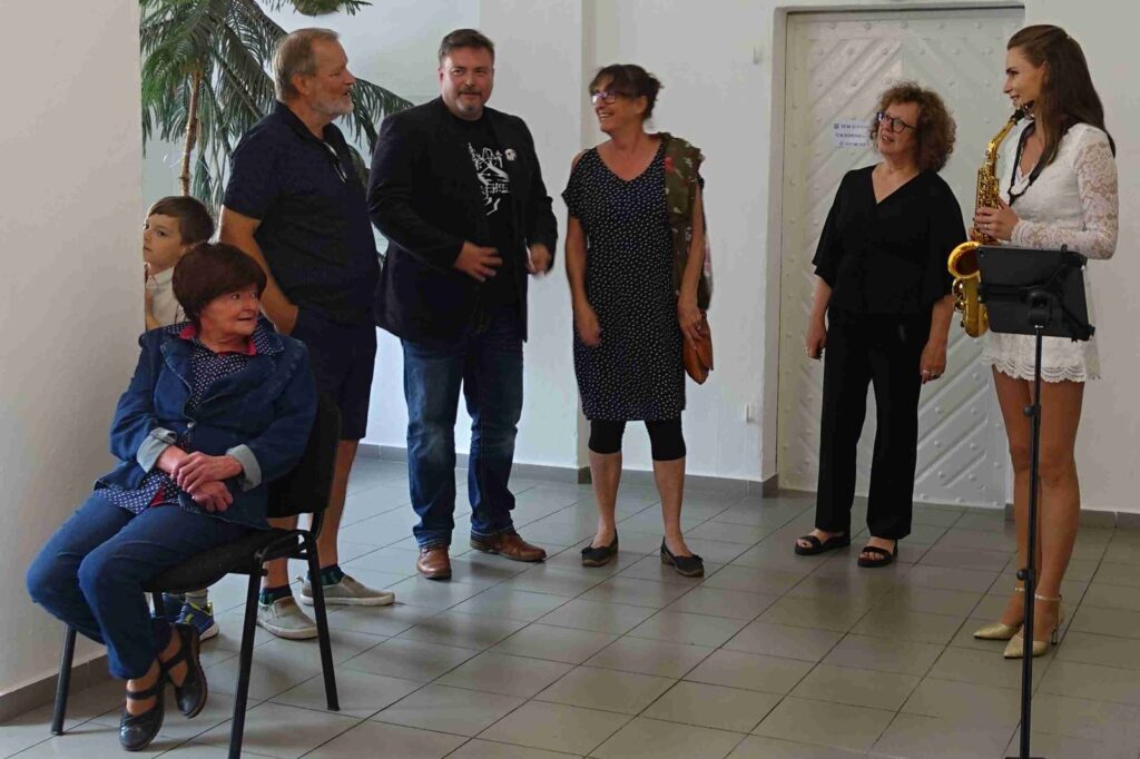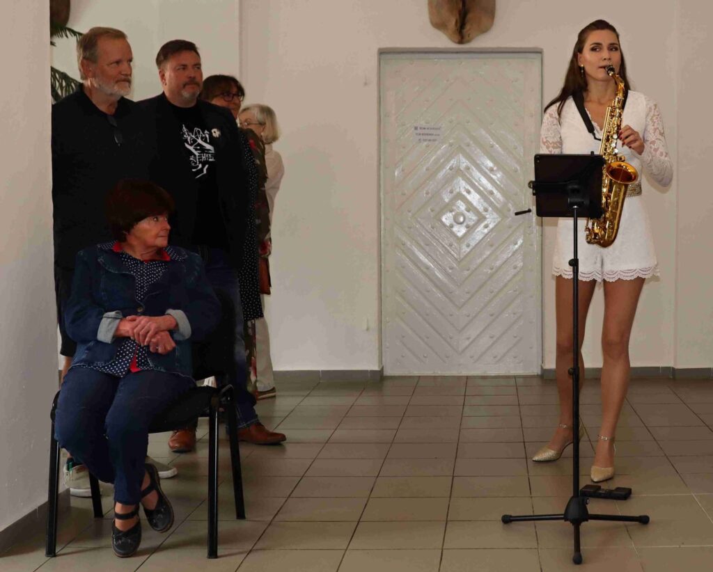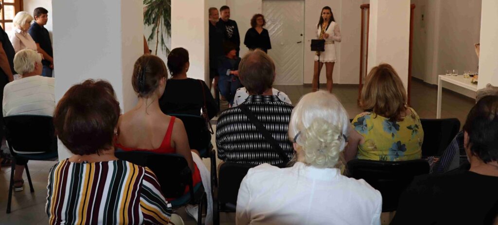 Vystavená díla autorky, Kateřina Pavlíková na saxofon, zasvěcené hodnocení Mgr. Víta Pavlíka, improvizované vystoupení autorky s tlumočením z italštiny a výborní návštěvníci, děkujeme.
