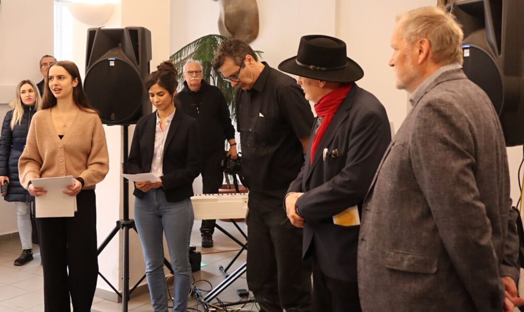 Kromě úvodního slova Pavla Frelicha, to bylo vystoupení ředitelky Alliance Francaise Jižní Čechy – Margot Roulland, která promluvila k výstavě. O sobě promluvili oba vystavující, tlumočila, kde bylo třeba, Magdalena Barde.