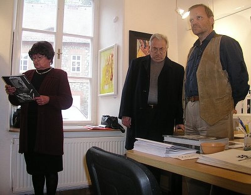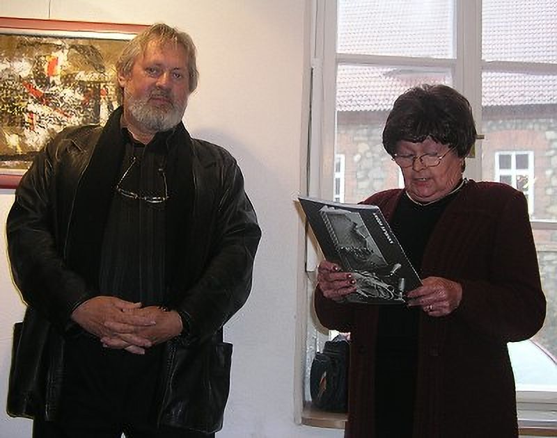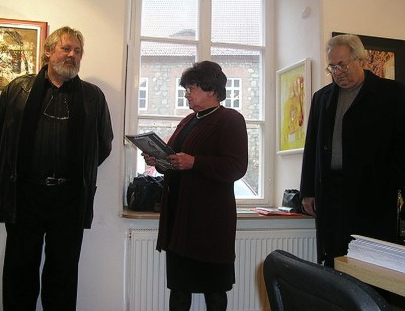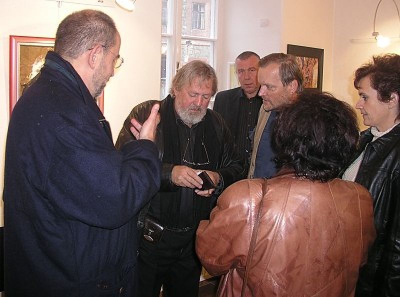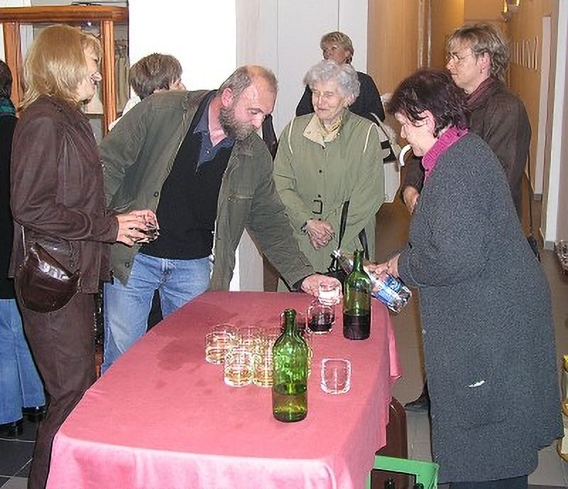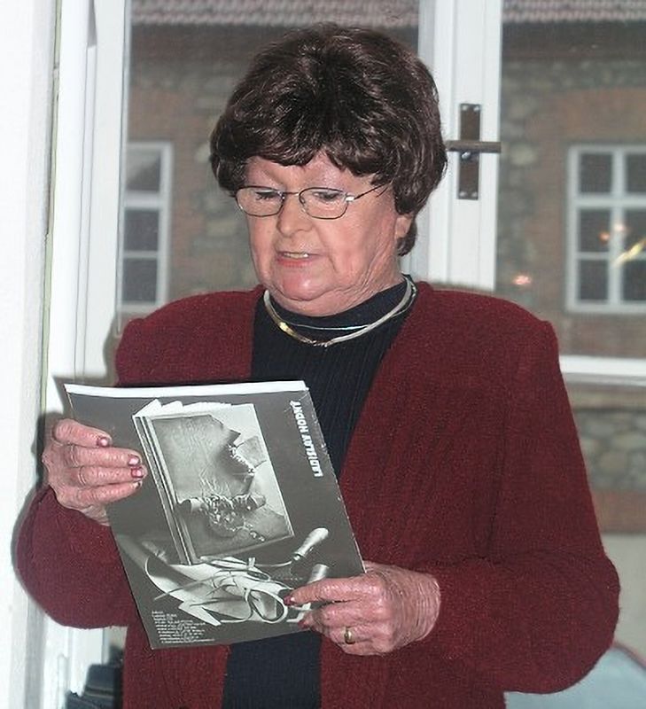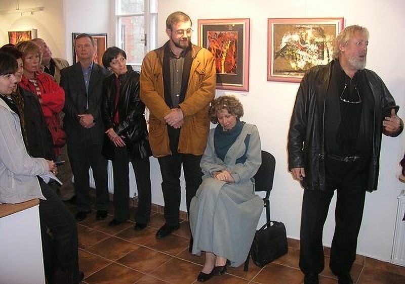 K výstavě promluvila galeristka Marie Hanušová a host a přítel pana Ladislava Hodného, herec ND Bronislav Poloczek.
