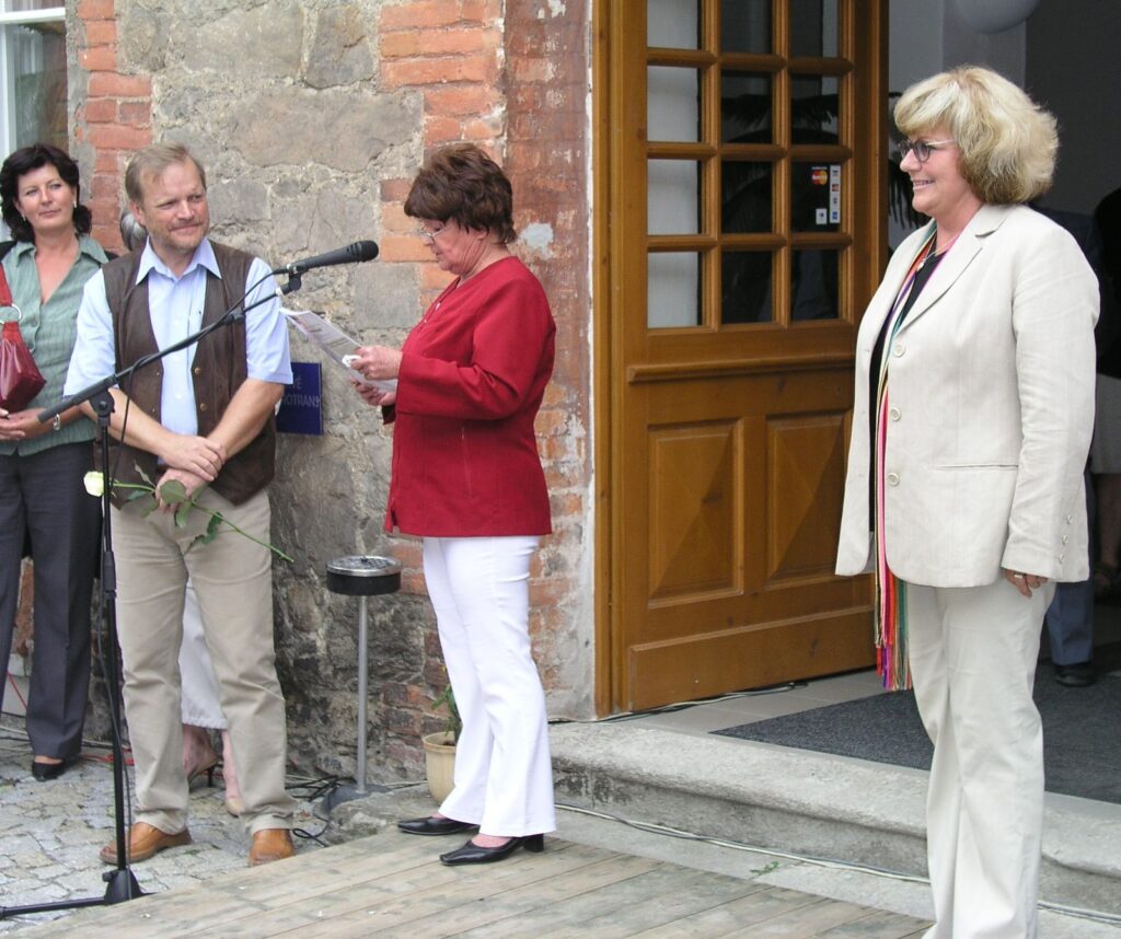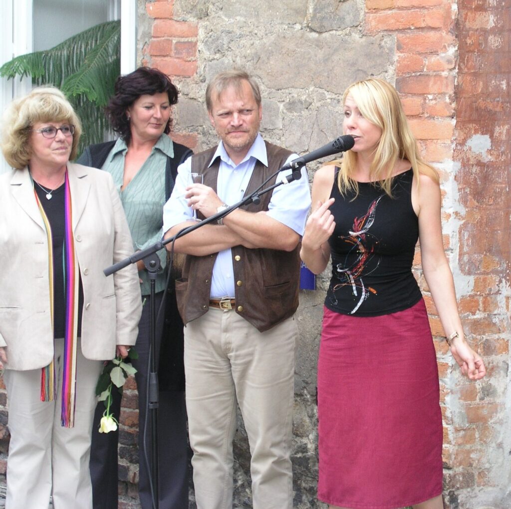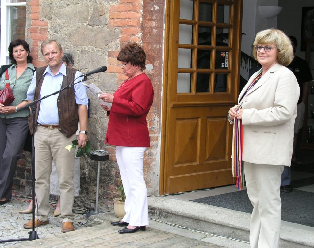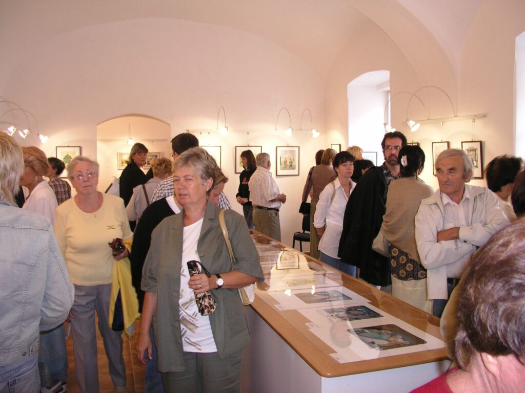 Pro velký zájem našich věrných i dalších návštěvníků byla vernisáž výstavy nakonec venku, na nádvoří Knížecího dvora. I počasí nám v tom okamžiku přálo a tak pěkná vernisáž proběhla v pohodě a dobré náladě. Součástí vernisáže byla tentokrát jako „kulturní program“ módní přehlídka BOUTIQUE MATA HARI, která pod širým nebem velmi dobře vynikla.