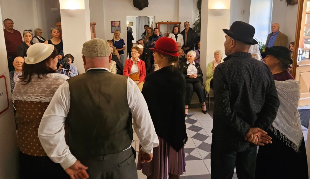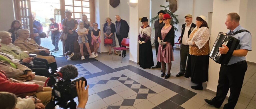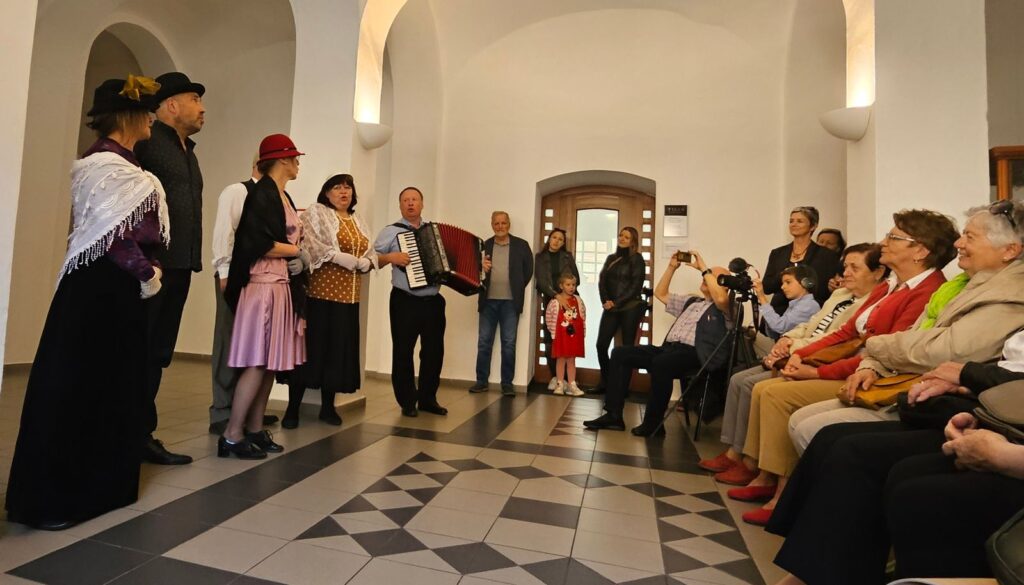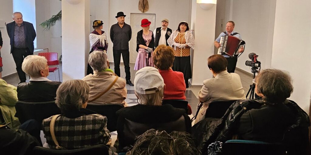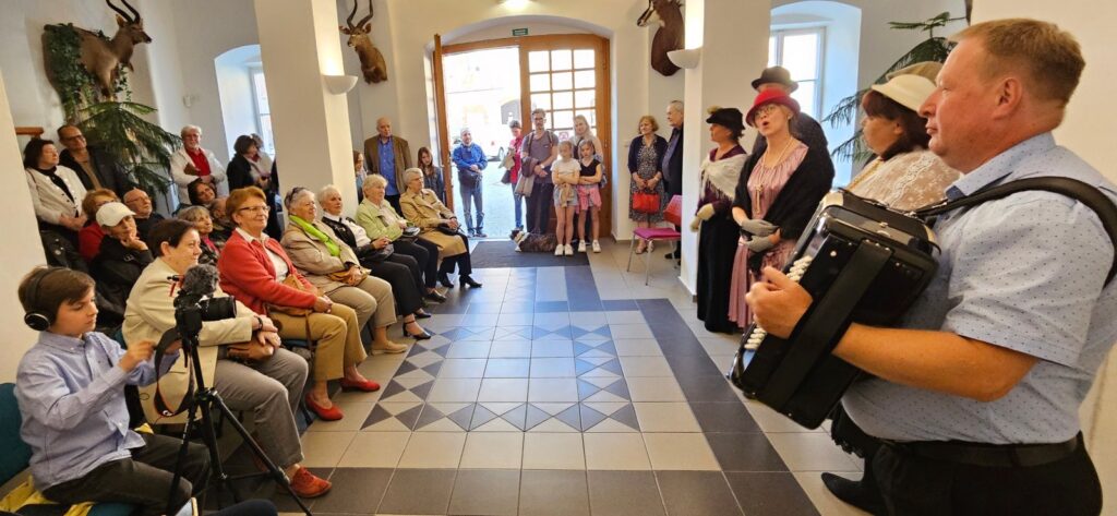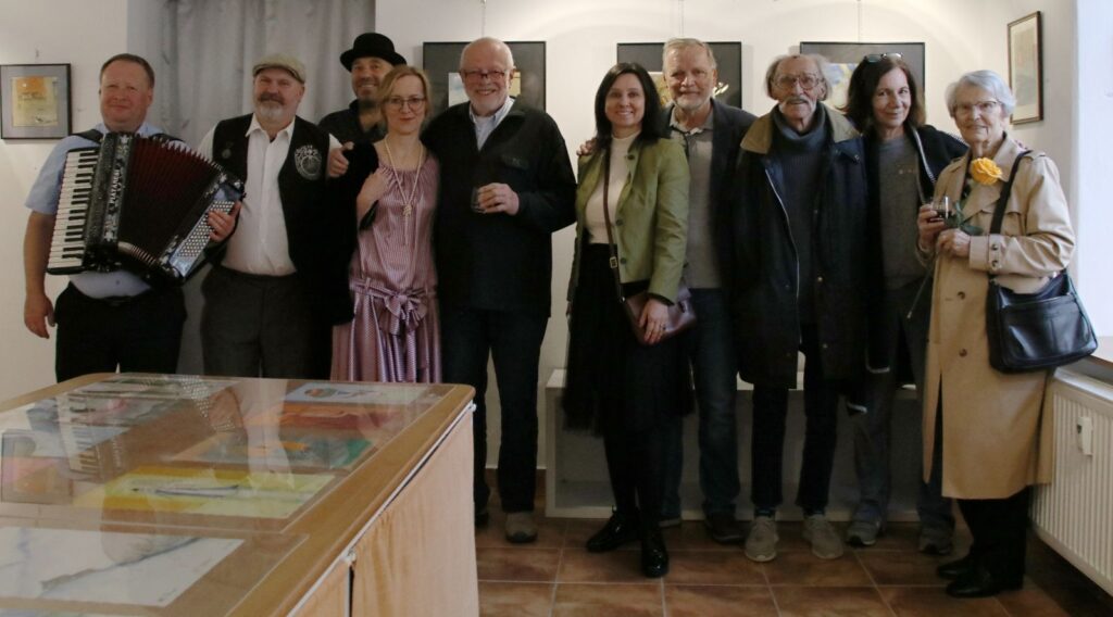 K pohodové atmosféře vernisáže přispěli jistě svými písničkami členové ochotnického divadla Křížžáci za doprovodu harmoniky Pavla Vokůrky.
