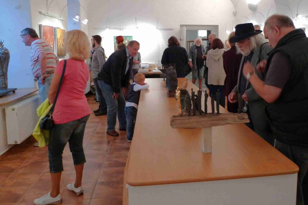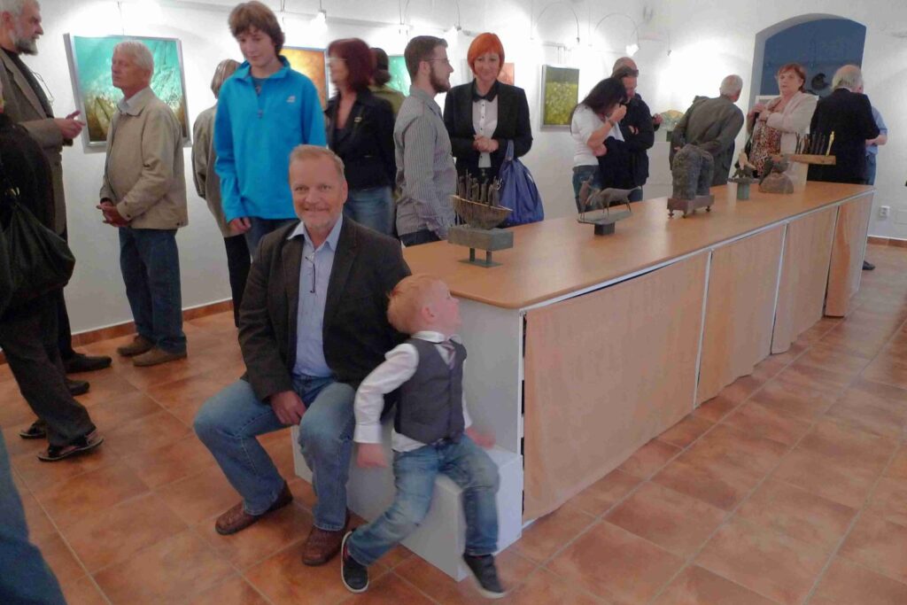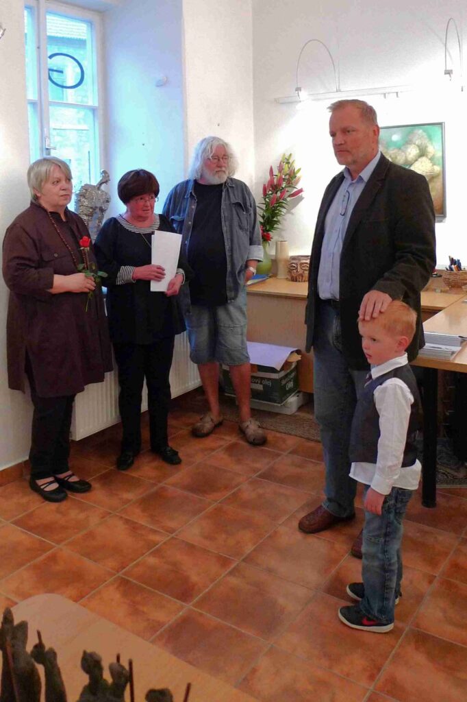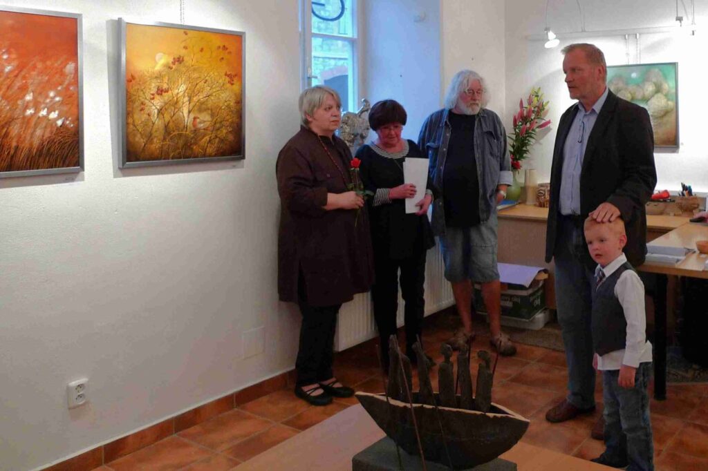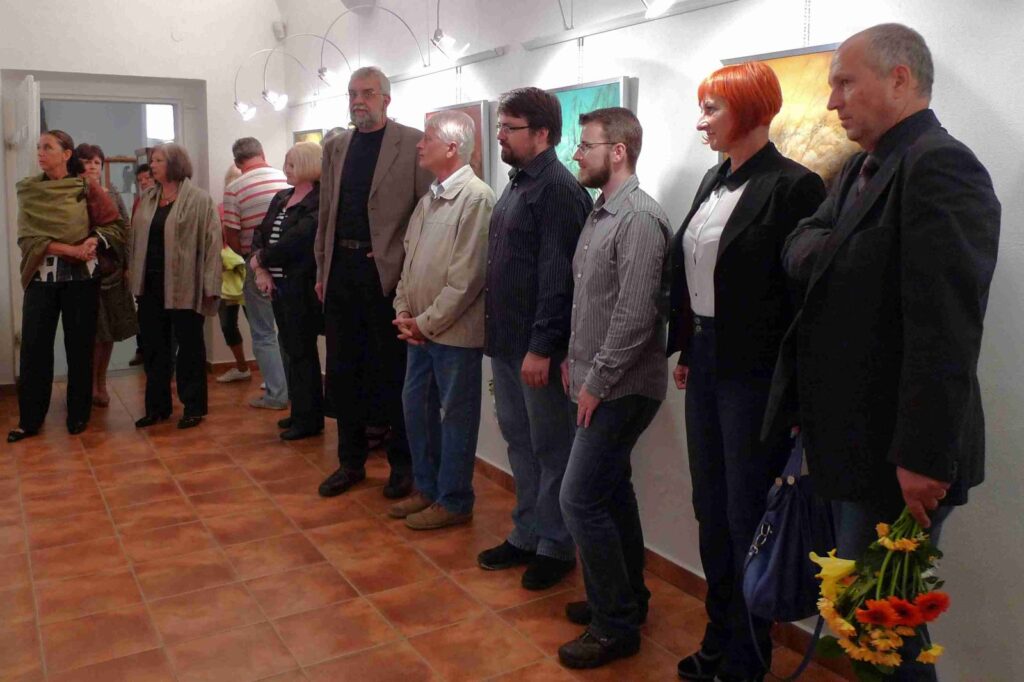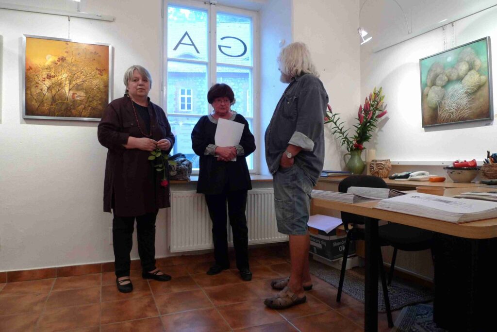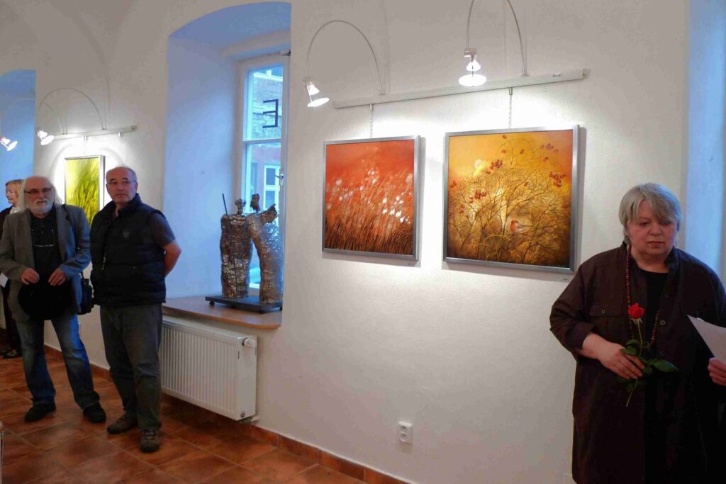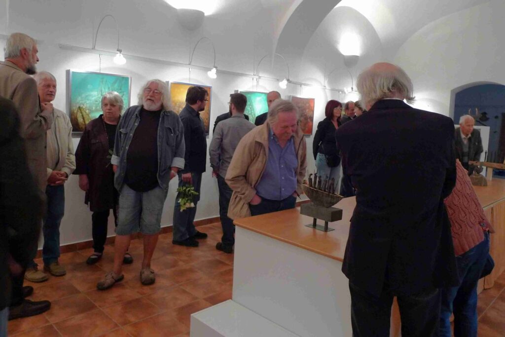 Deštivý den nepokazil příjemnou atmosféru další vernisáže naší galerie. Podle přání autorů, opravdu velmi krátká vernisáž otevřela krásnou výstavu obou autorů, jež po krátkém úvodu Pavla Frelicha uvedla galeristka Marie Hanušová. Děkujeme všem za pěknou účast.