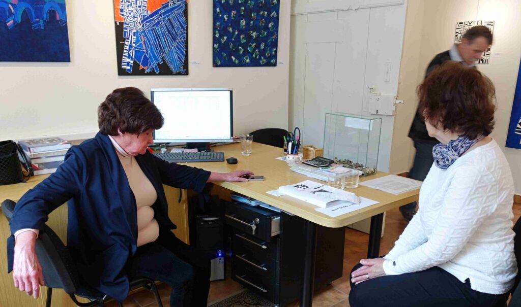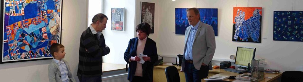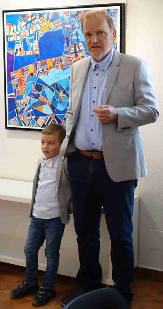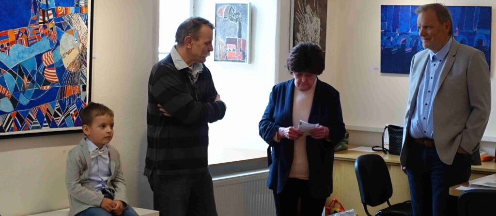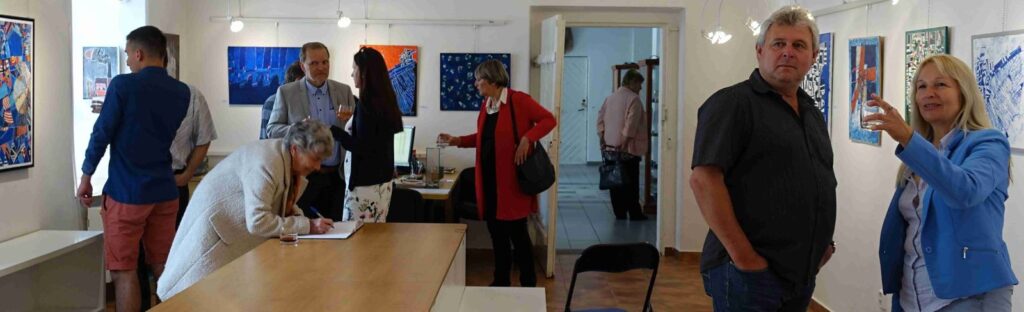 Vernisáž zahájil Pavel Frelich a seznámil přítomné s tím, že naše galeristka Marie Hanušová, získala tento týden cenu Ď, za dlouhodobé, vlastně celoživotní, působení v oblasti výtvarného umění. Představení autora proběhlo formou interview mezi Marii Hanušovou a autorem.
