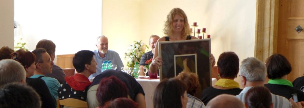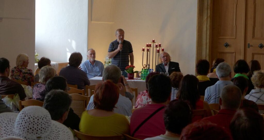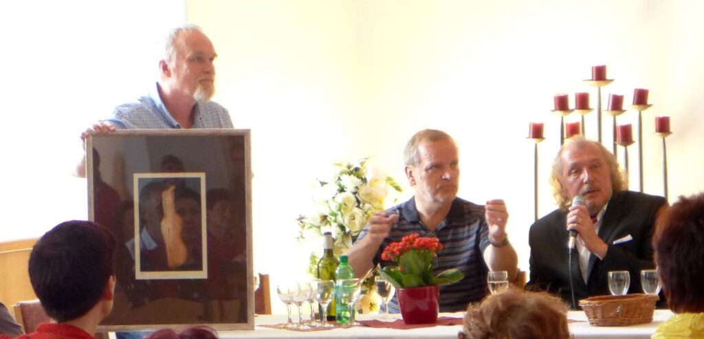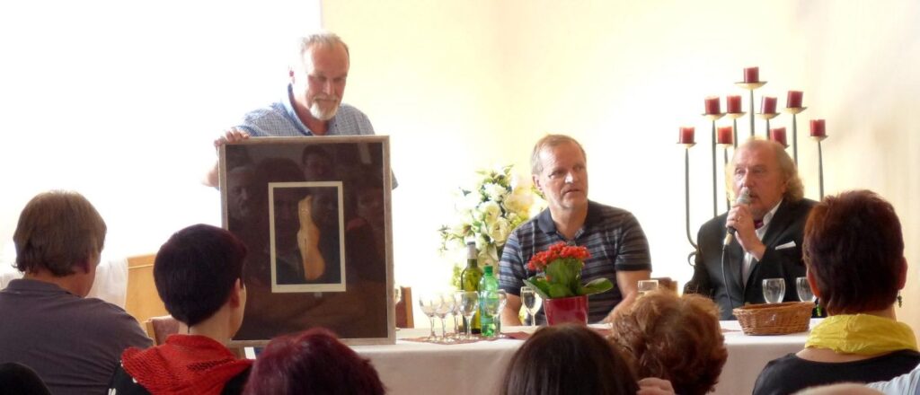 Uprostřed výstavy, v sobotu 1. srpna 2014 byla s autorem beseda.