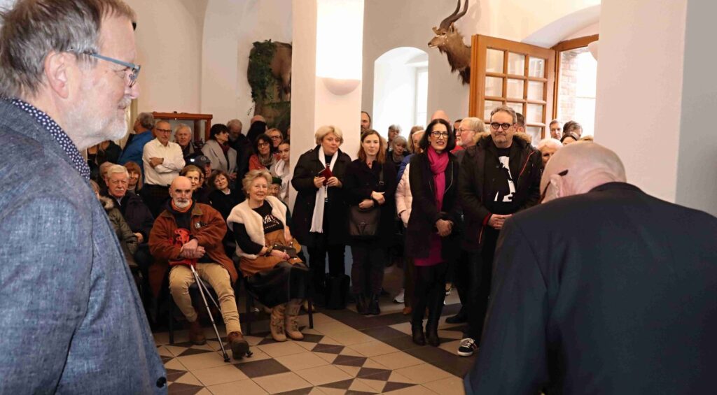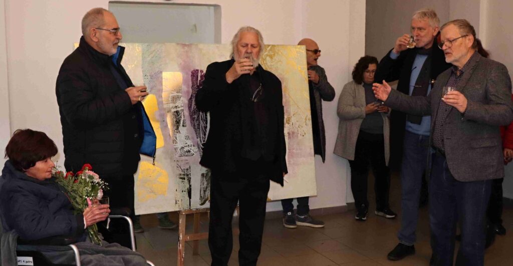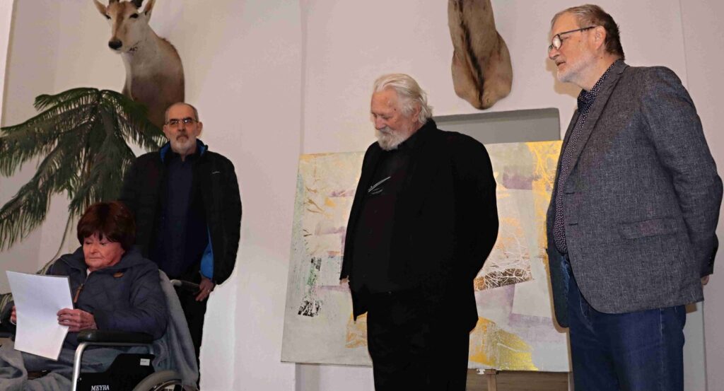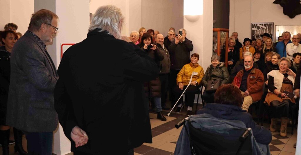 Dvacátá třetí výstavní sezóny naší galerie byla zahájena velkolepou vernisáží, že jsem se do vestibulu přek galerii skoro nevešli. Ale všechno dobře dopadlo. Uvítání a zahájení provedl Pavel Frelich. Všichni jsme byli rádi, že mezi nás opět přišla naše galeristka Marie Hanušová a přednesla pojednání o díle a životě autora. Pěkně nás pobavilo vystoupení Dr. Ivo Šmoldase a na saxofon krásně zahrál Štěpán Markovič. Z autora jsme mnoho slov nedostali, za něho nás oslovila jeho díla krásné výstavy.