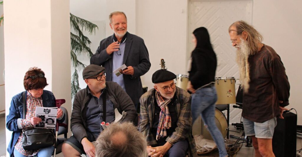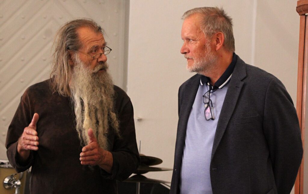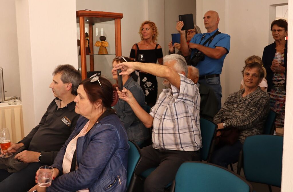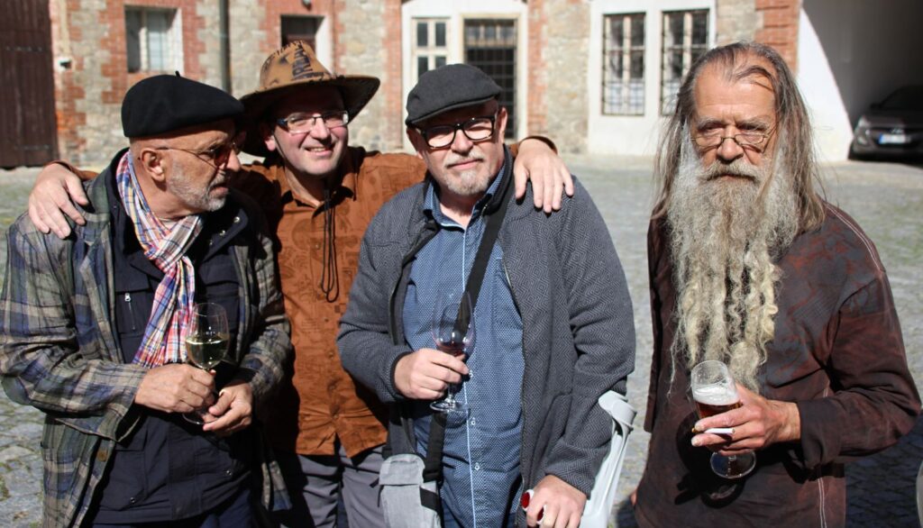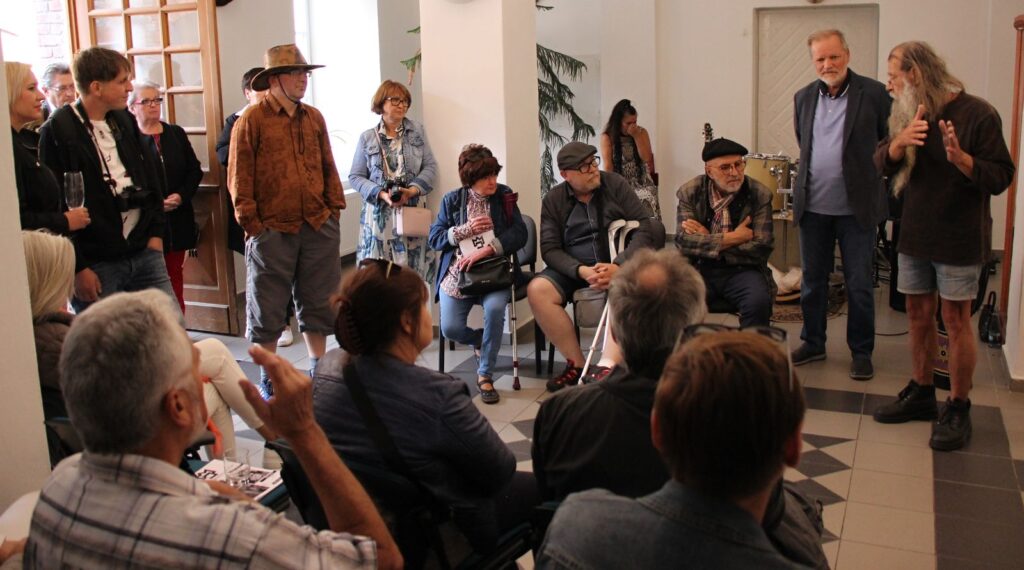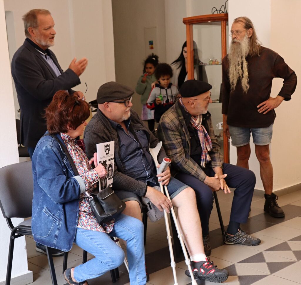 Tradičně vernisáž zahájil Pavel Frelich, Marie Hanušová (jsme rádi, že zase byla mezi námi na vernisáži) poděkovala autorům za výstavu a trochu netradičně o autorech promluvili samotní autoři. V improvizovaném, neformálním vystoupení nám každý z nich dal nahlédnout do svého života a tvorby.