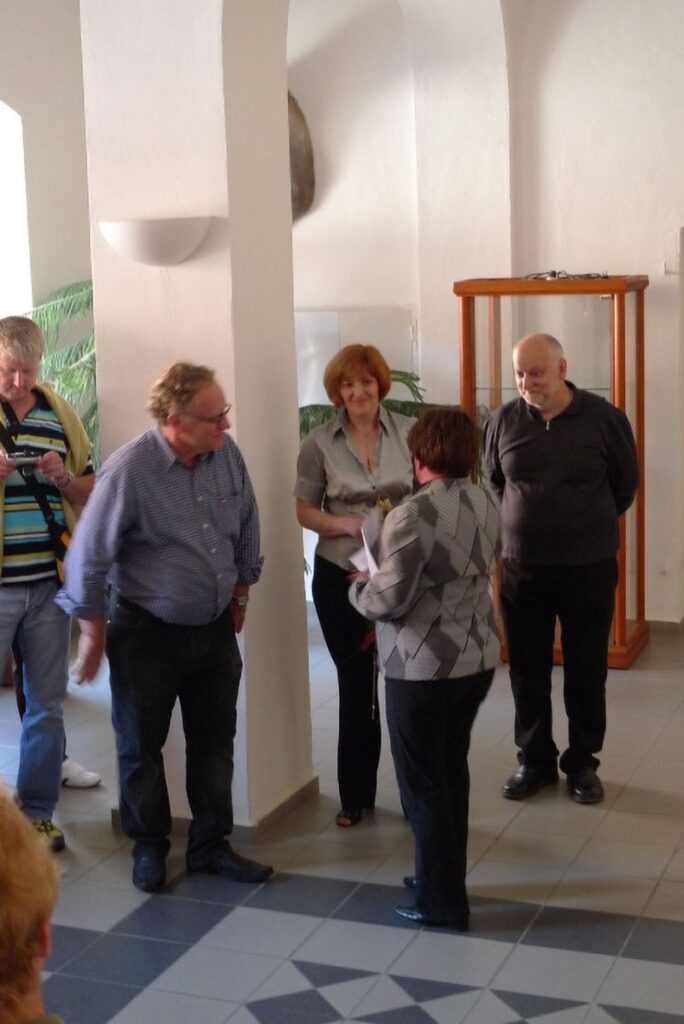 Druhá vernisáž sezóny 2011 měla prvenství, které naše galerie ještě nezažila. Již se konala výstava dvou autorů, to celkem často, i tří autorů jsme zažili. Ale ještě nikdy tří autorů, patřící do rodiny. Bratři Karel a Petr s jeho manželkou. Krásná výstava i vernisáž. V kulturním programu vystoupil sólista opery Národního divadla, Vladimír Doležal. Co více si přát v sobotním květnovém odpoledni. Děkujeme všem příznivcům naší galerie za účast, stejně jako příznivcům a známým autorů. kteří přijeli mnohdy z daleka.