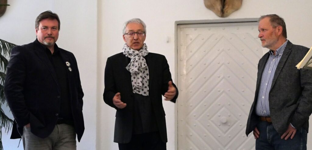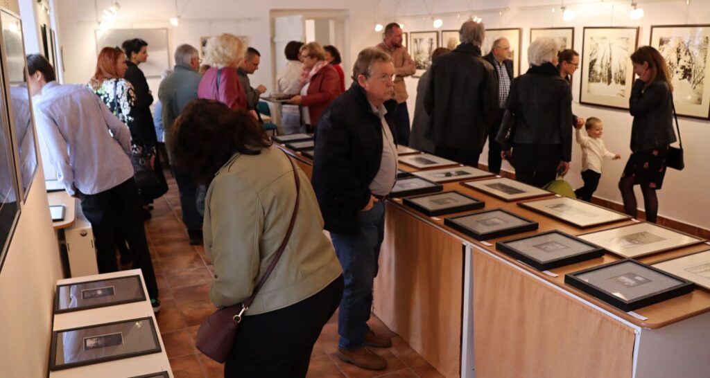 Takže Pavel Frelich uvedl vernisáž, pozdrav od Marie Hanušové a životopisná data o autorovi tlumočila Simona Frelichová. S dalším upřesněním tvorby autora vystoupil předseda Asociace jihočeských výtvarníků Mgr. Vít V. Pavlík. Autor sám nám vysvětlil technické zákulisí jeho tvorby, tedy jak jeho díla vznikají po technické stránce. Fyzikální principy si dnešní uživatelé moderních fotoaparátů a mobilů, už ani nedovedou představit. Že by v tenkém těle mobilu mohl fungovat stejný princip, jak v metrovém „fotoaparátu“ autora (tedy správně jeho camera obscura). Tak jsme zase o trochu chytřejší, jak to funguje.