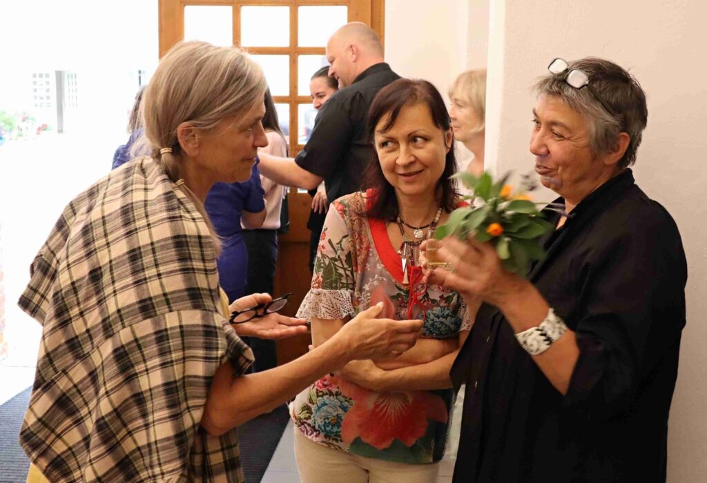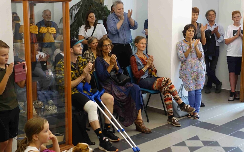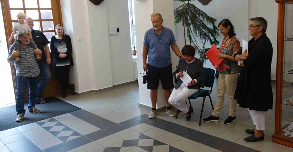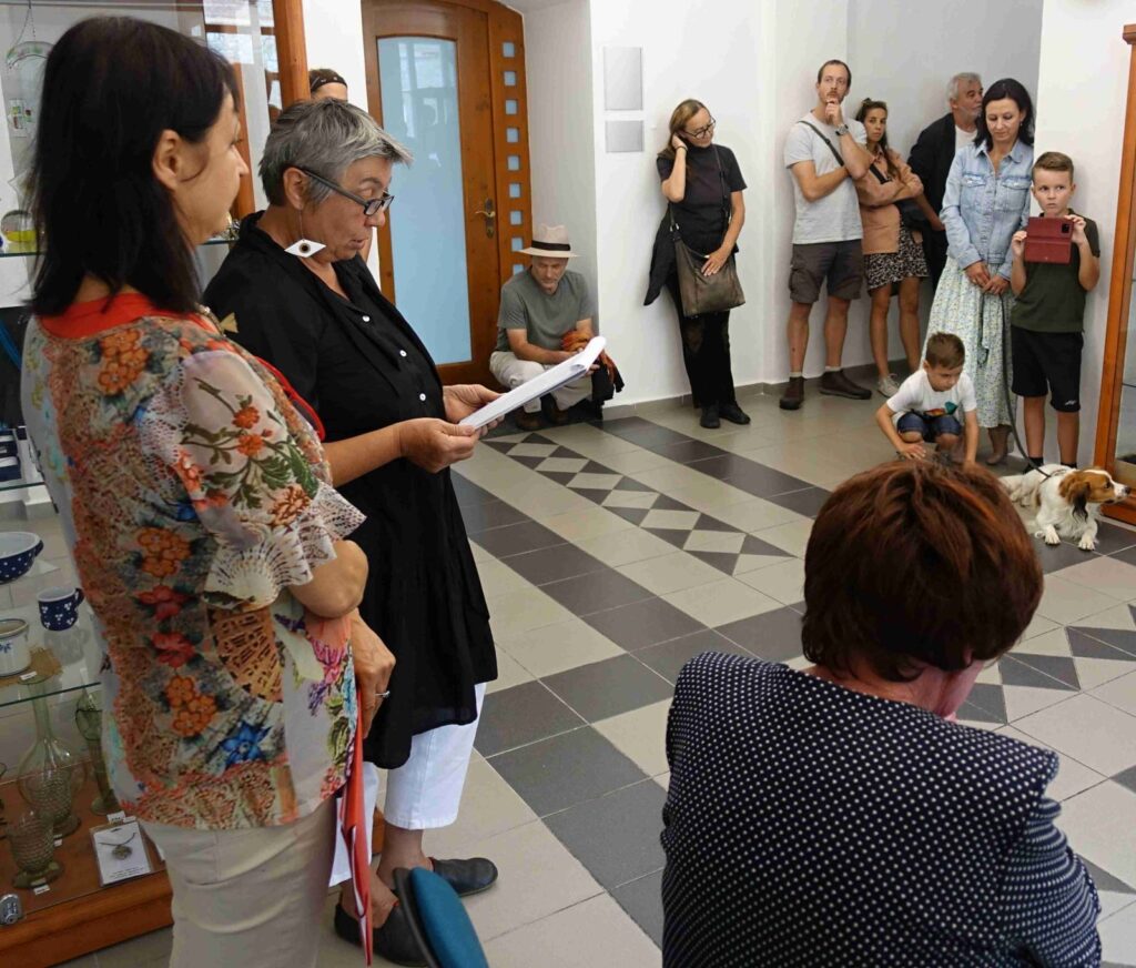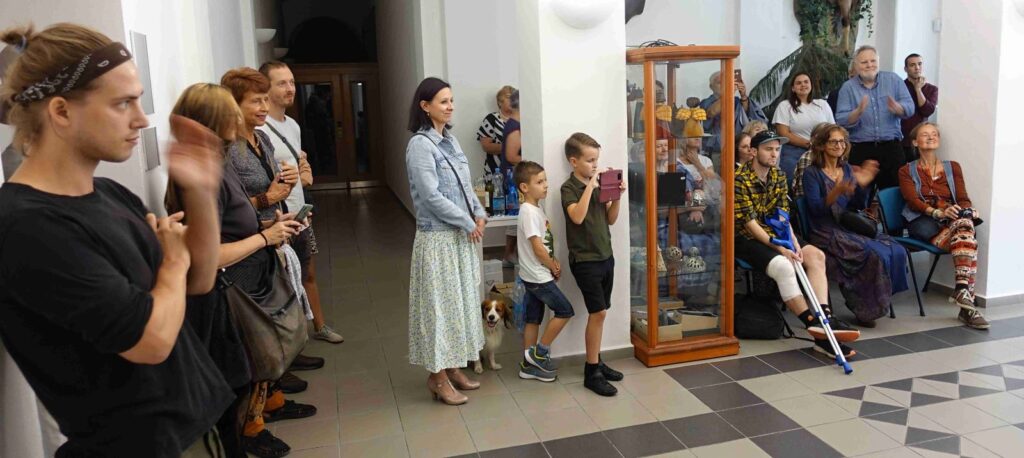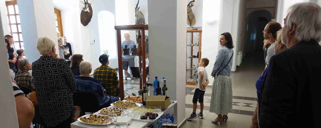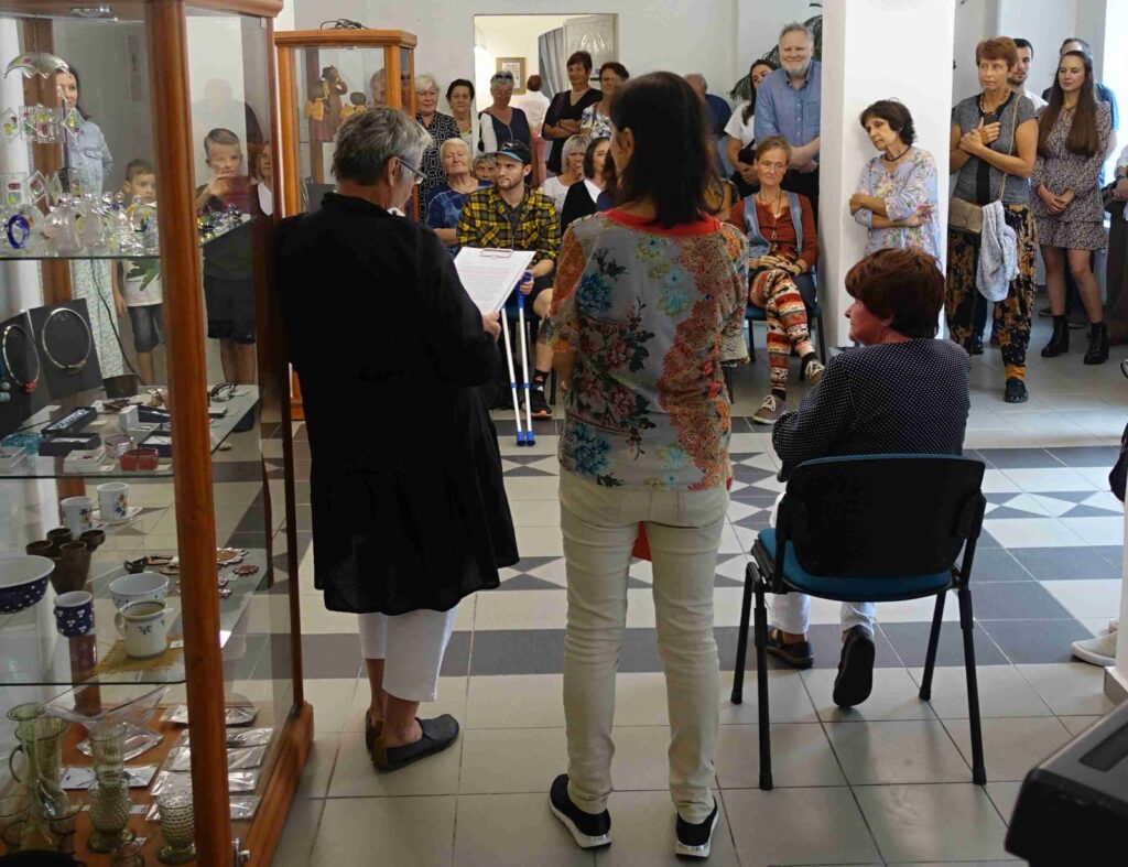 Výstavu zahájili Pavel Frelich a Marie Hanušová, která nás seznámila s autorkou. O autorce a jejím díle promluvila Vendula Březinová a postřehy ze svého života nám prozradila autorka, bylo to moc pěkné. Výstava určitě stojí na zhlédnutí a nezapomeňte vzít své děti, odnést si originálního medvídka není špatné.