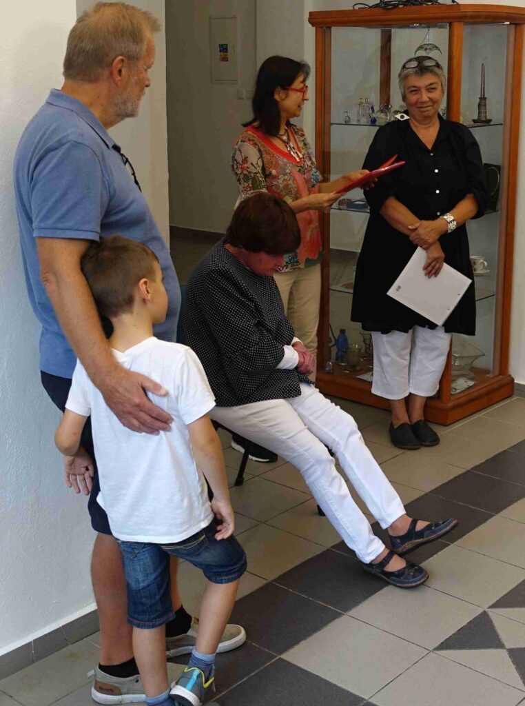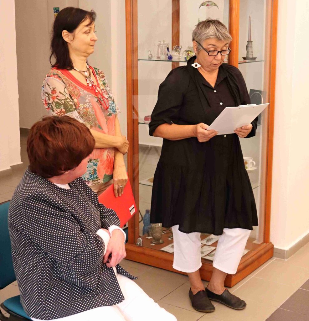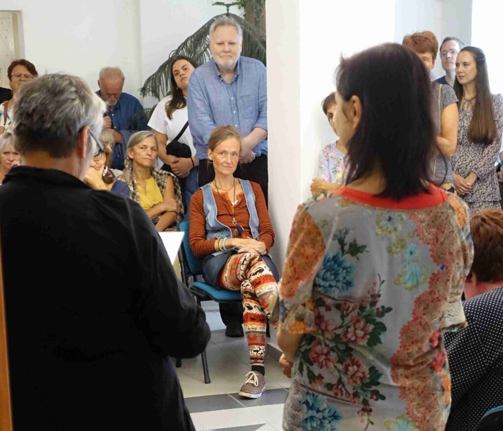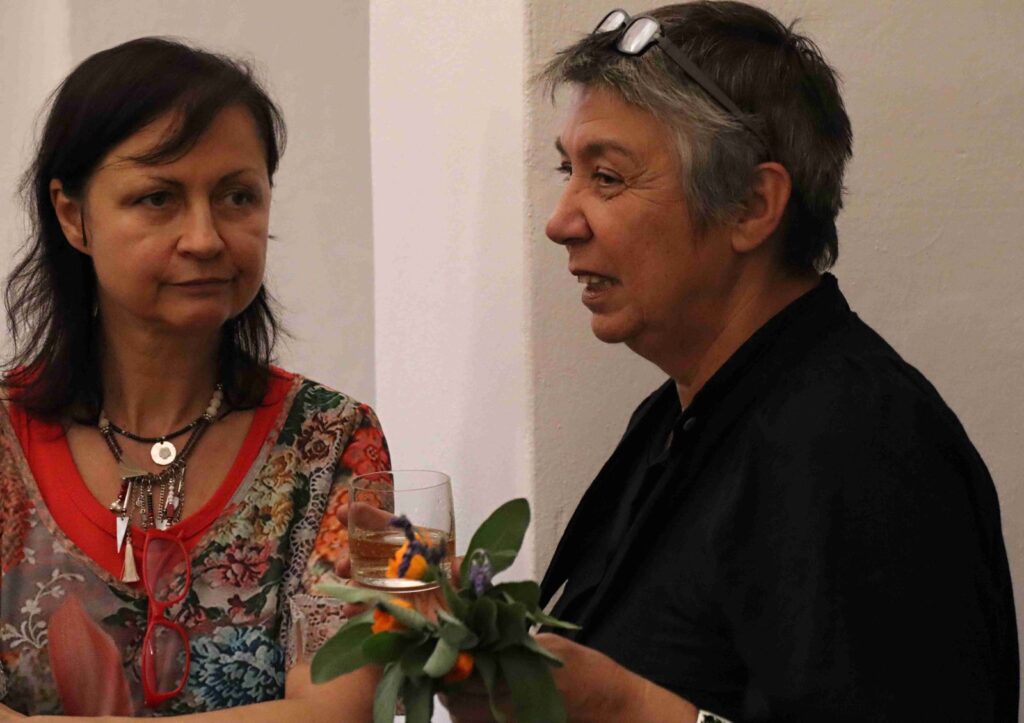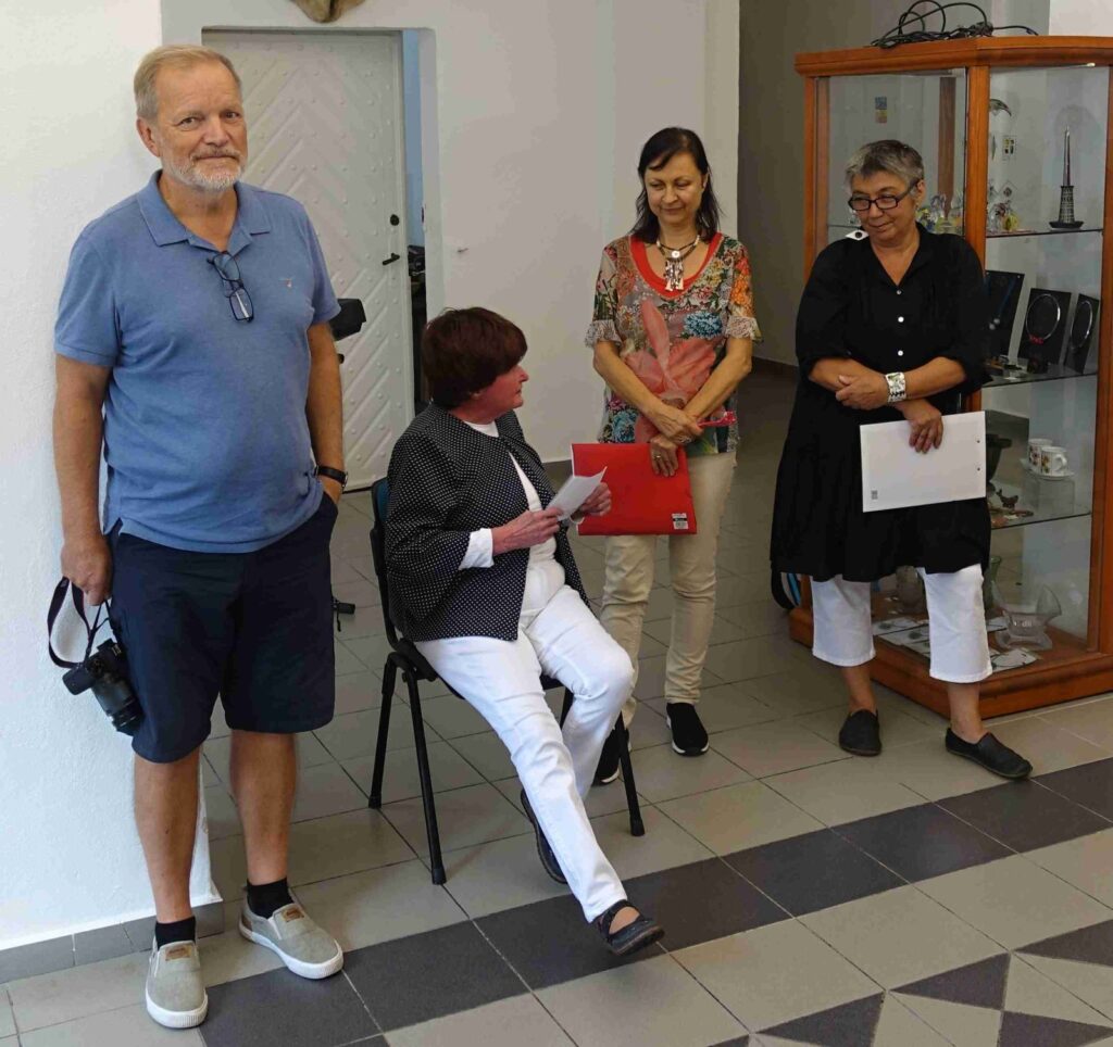 Výstavu zahájili Pavel Frelich a Marie Hanušová, která nás seznámila s autorkou. O autorce a jejím díle promluvila Vendula Březinová a postřehy ze svého života nám prozradila autorka, bylo to moc pěkné. Výstava určitě stojí na zhlédnutí a nezapomeňte vzít své děti, odnést si originálního medvídka není špatné.