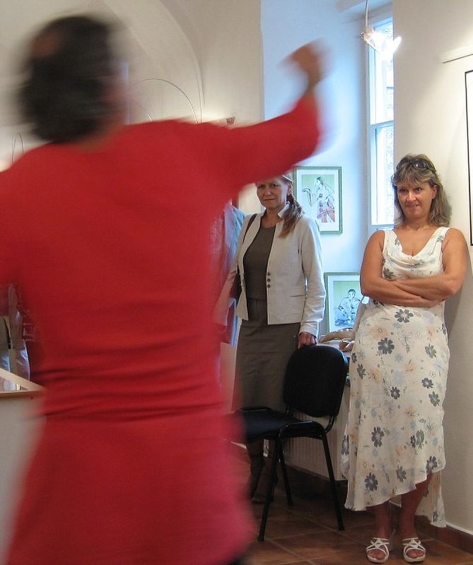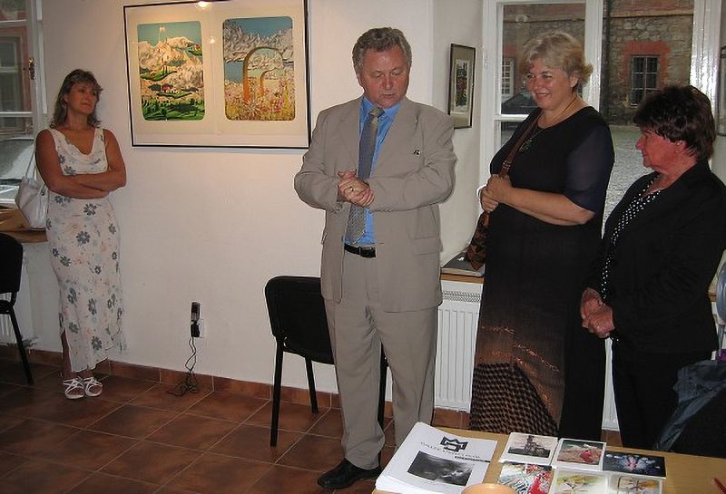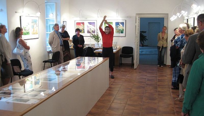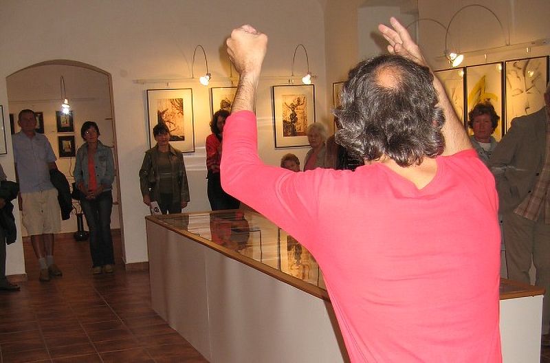 Slavnostní vernisáž v deštivém sobotním odpoledni oživil svým vystoupení mim Igor Tausinger. K výstavě promluvil významný host vernisáže Doc. MUDr. Jaroslav Zvěřina, CSc. Děkujeme všem příznivcům naší galerie za účast.