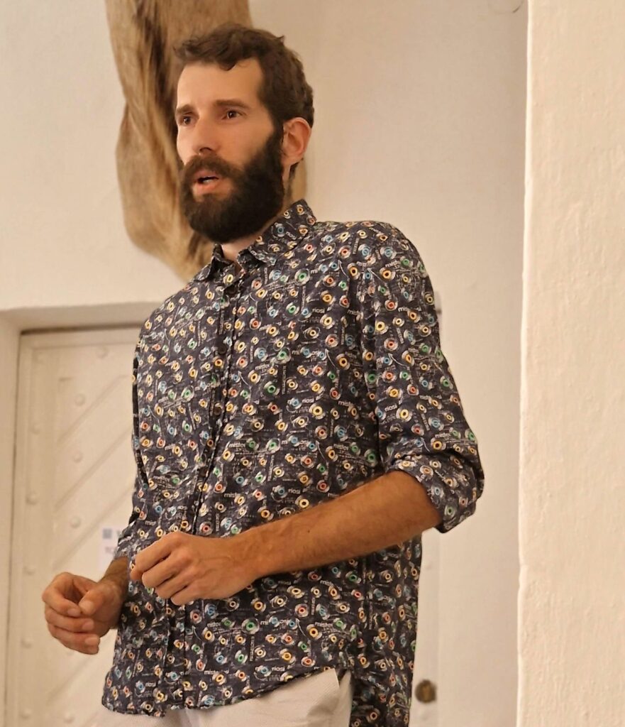Štěpán Mareš vystavoval v naší galerii v roce 2007, kdy se představil hlavně svými kresbami a komiksy, tentokrát nám dává nahlédnout do celé šířky jeho tvorby, jak je dáno názvem výstavy.