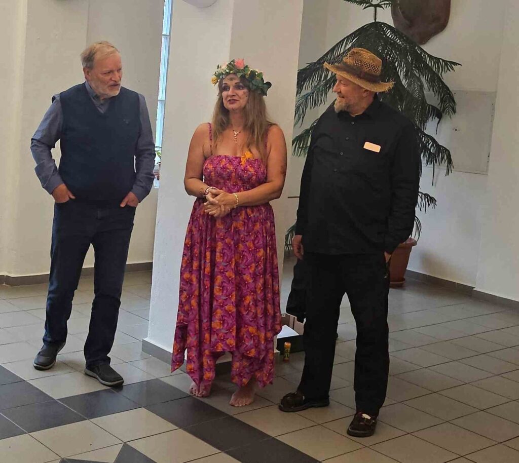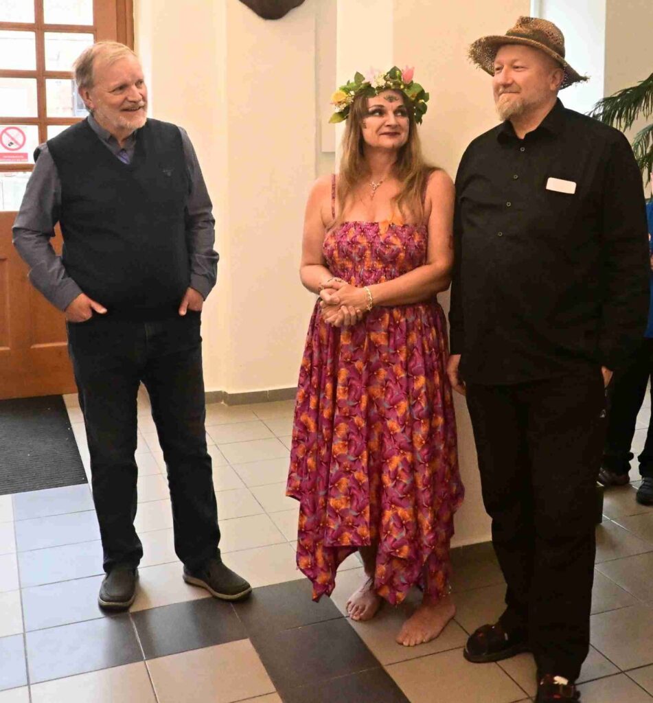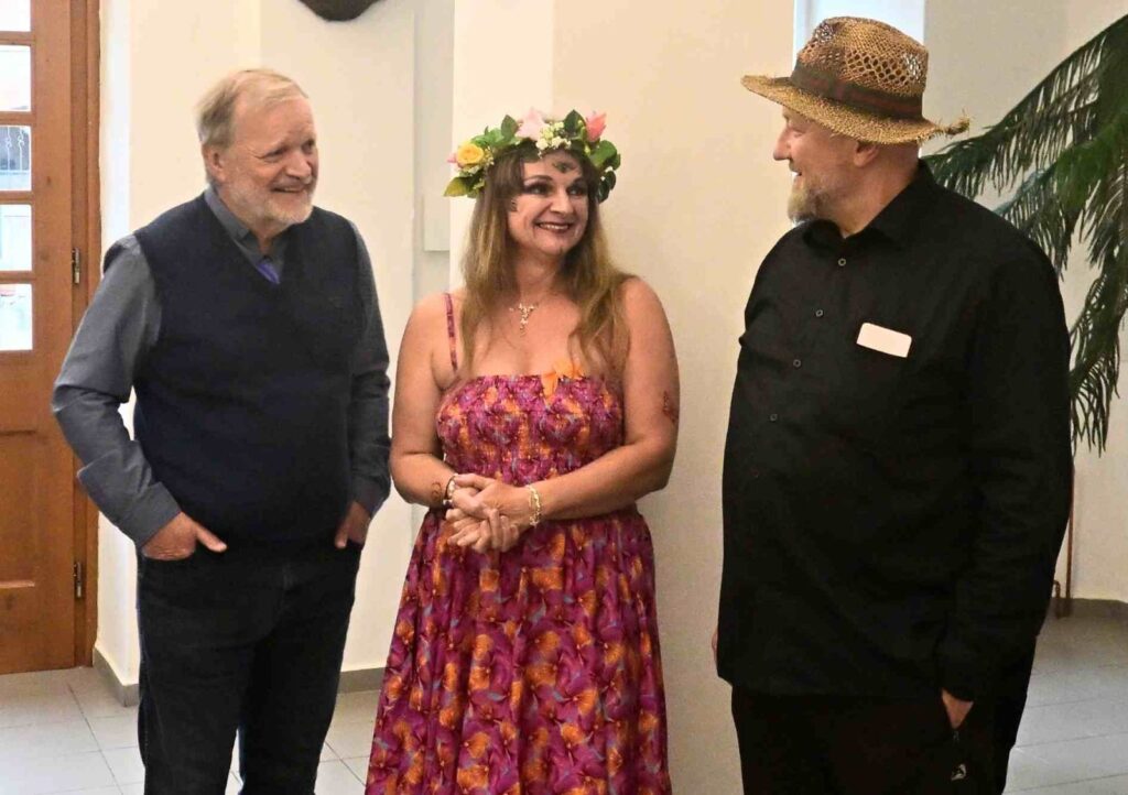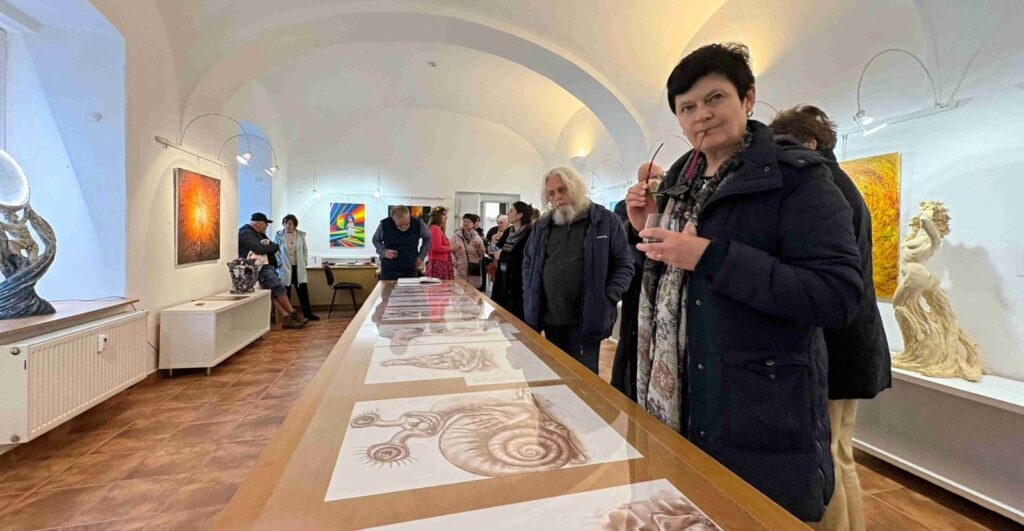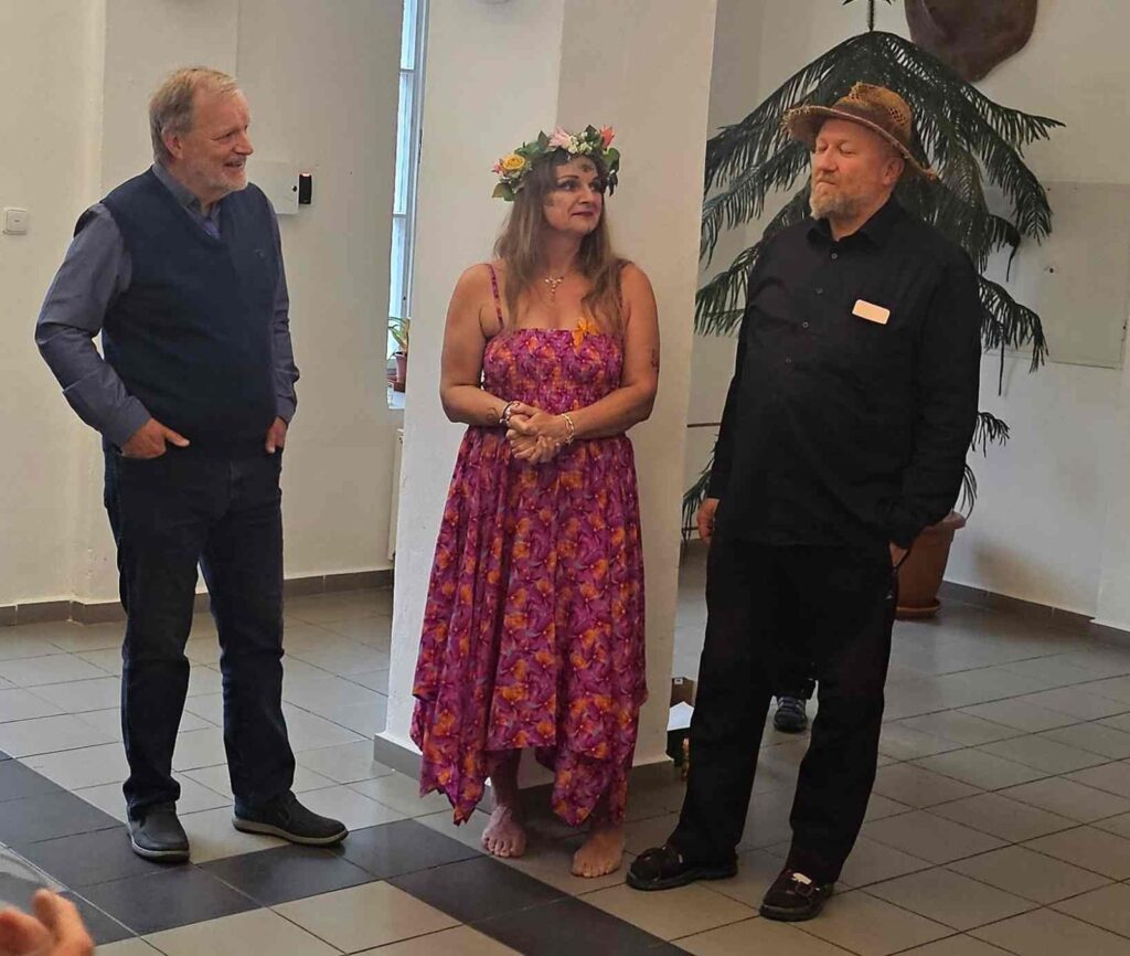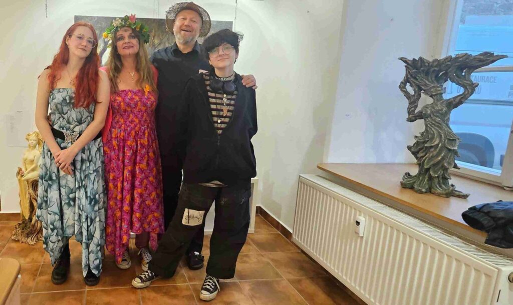 První vernisáž roku 2025 se nesla v poetickém duchu, nejen v dílech vystavující, ale také v jejím vystoupení. Společně s dcerami Sašou a Sofií nám předvedly tanec víl a pak jsme si mohli podobné prohlédnout na obrazech a sochách, vlastně i v autorčiných básních.