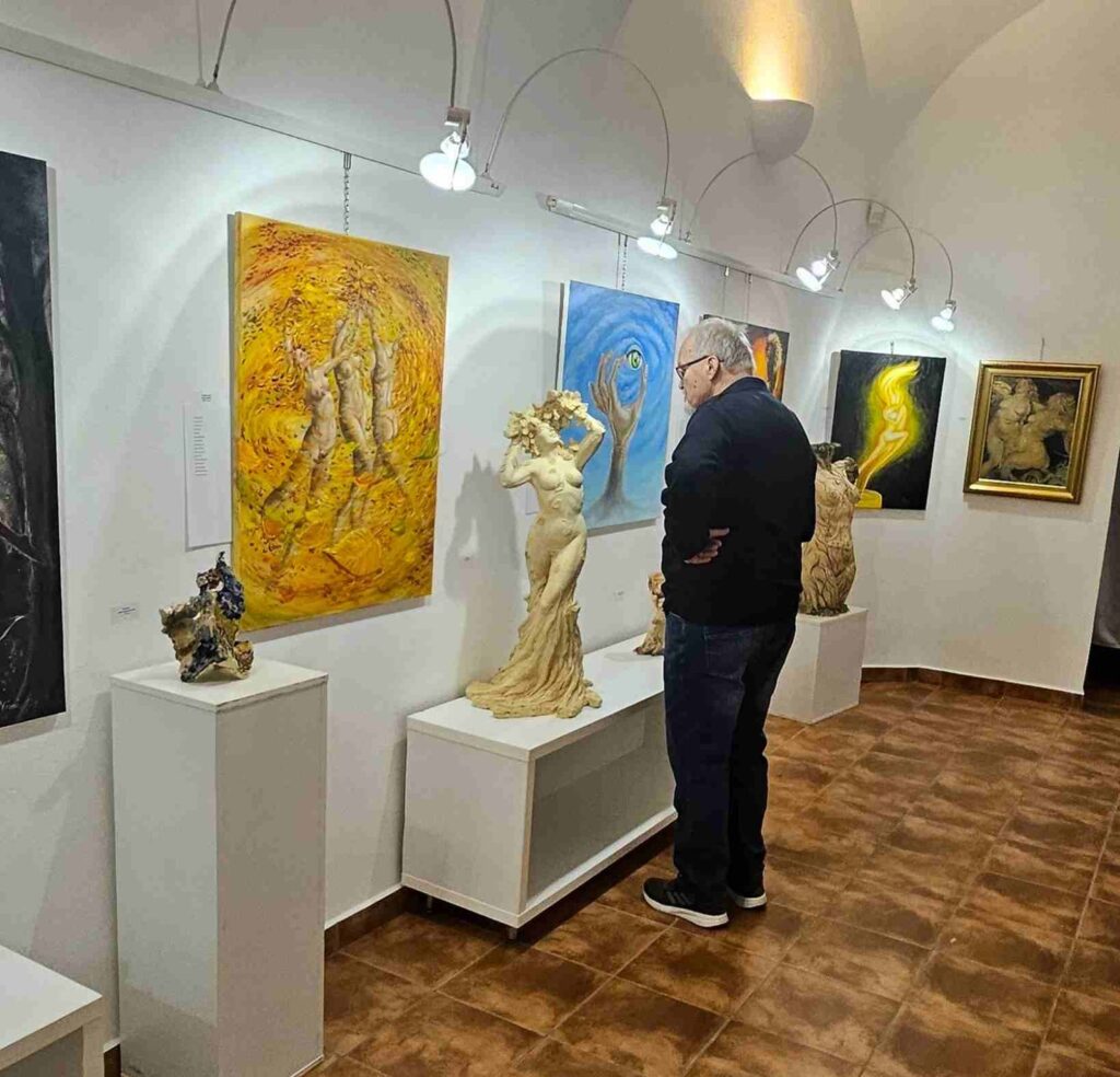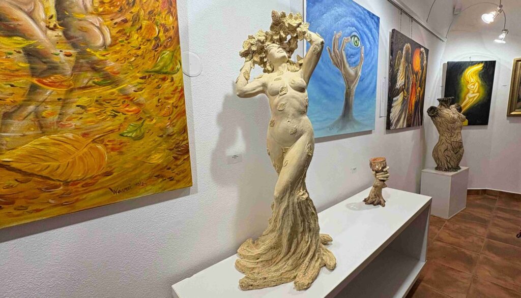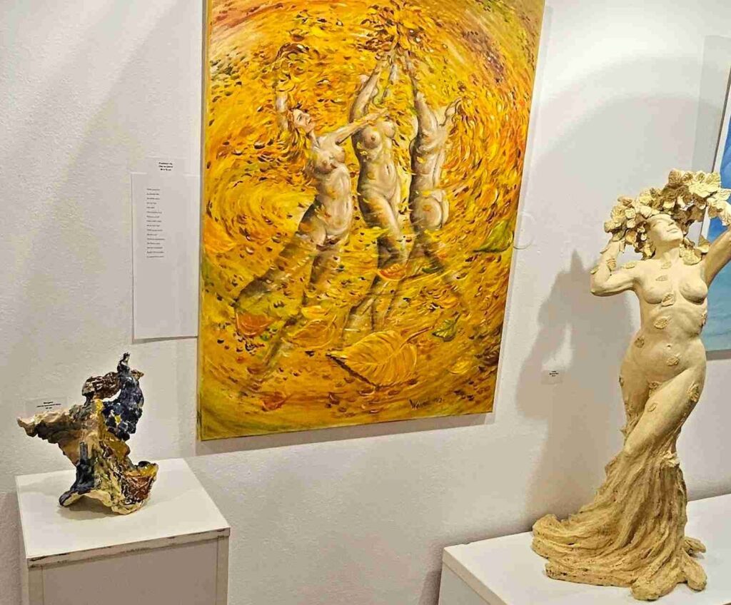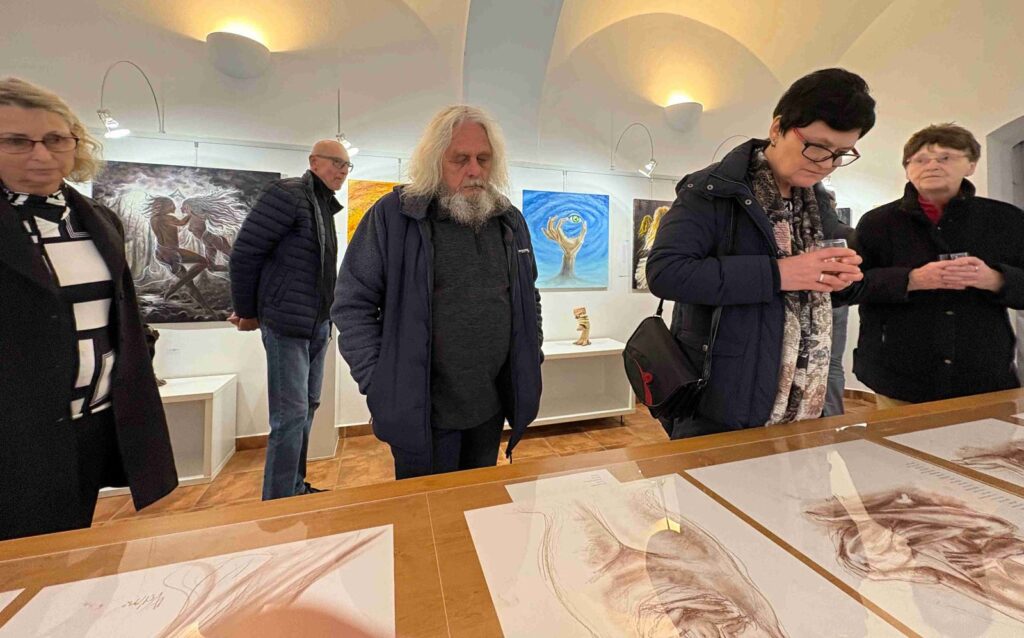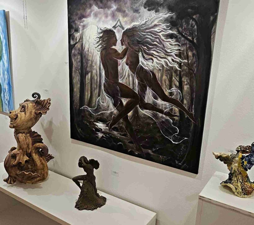 První vernisáž roku 2025 se nesla v poetickém duchu, nejen v dílech vystavující, ale také v jejím vystoupení. Společně s dcerami Sašou a Sofií nám předvedly tanec víl a pak jsme si mohli podobné prohlédnout na obrazech a sochách, vlastně i v autorčiných básních.