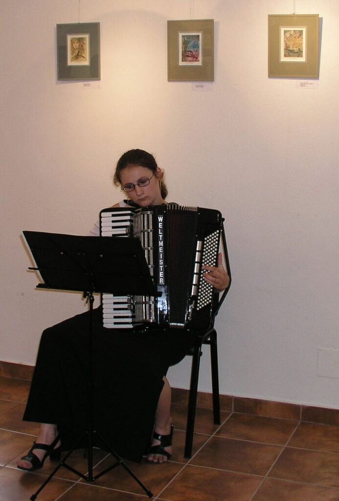 První výstava Olgy Vychodilové v naší galerii a jistě ne poslední. její umění je krásné a dovede pohladit na duši. V kulturním programu vystoupila s hrou na harmoniku, což se dneska tak často nevidí.