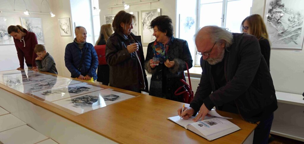 Tradičně výstavu zahájil a přivítal návštěvníky za galerii Pavel Frelich, k výstavě promluvila galeristka Marie Hanušová. Autor sám přečetl vlastní pojednání tématicky se vztahující k výstavě a pohledu na dnešní svět v oblastech zobrazených obrazy.